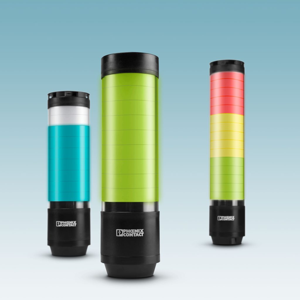 Phoenix Contact erweitert das Portfolio an Signalgeräten um drei neue konfigurierbare Signalsäulen der Serie PSD-SC. Die Modelle bieten bis zu 15RGB-Segmente, verschiedene Betriebsmodi und sind aufgrund der IO-Link-Schnittstelle parametrierbar. Die Signalsäulen sind in zwei Baugrößen erhältlich und ermöglichen eine präzise Darstellung von Maschinenzuständen in vier Betriebsmodi, darunter Ampel-, Füllstand-, Balken- und Statusanzeige. Die RGB-Segmente lassen sich einzeln ansteuern und bieten hohe Leuchtkraft sowie gute Sichtbarkeit auch bei Tageslicht. Zwei Varianten verfügen zusätzlich über ein integriertes Akustikelement, das eine akustische Ergänzung zur optischen Signalisierung ermöglicht. Die Parametrierung erfolgt über IO-Link durch IODD-Integration in PLCnext Engineer, was eine einfache Einbindung in bestehende Automatisierungssysteme erlaubt. Die robuste Bauweise mit Schutzarten IP66/IP69K, UL Type 4X und IK08 gewährleistet den zuverlässigen Einsatz in rauen Industrieumgebungen. Durch die M12-Anschlusstechnik und flexible Montagemöglichkeiten lassen sich die Signalsäulen vielseitig einsetzen.