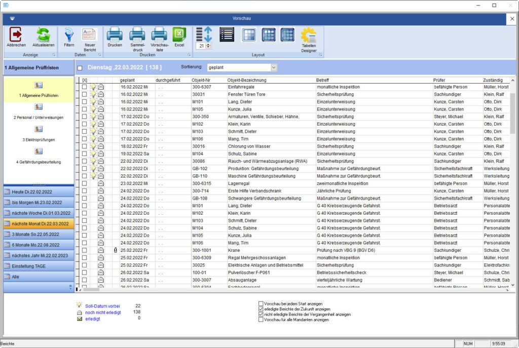 Dass Werkzeuge, Maschinen und Anlagen regelmäßig geprüft werden müssen, ist klar. Wer je Betriebsmittel sicher prüfen will, kommt um die Dokumentation der Wartungsarbeiten nicht herum. Keine triviale Aufgabe. Zuallererst benötigt man einen Überblick über das betriebliche Inventar. Hierzu eignet sich eine Software, wie zum Beispiel der Wartungsplaner (www.wartungsplaner.de), in der auch die Prüfberichte und Prüfprotokolle festgehalten werden.