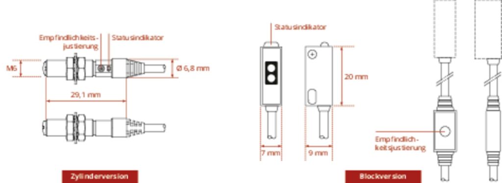 Die neuen Modelle wurden für den dauerhaften Einsatz unter industriellen Bedingungen entwickelt. Das Zylindermodell mit Edelstahlgehäuse ist vollständig vergossen und erfüllt die Schutzart IP67 gemäß IEC60529 – geeignet für feuchte oder staubige Umgebungen. Die Blockversion mit PBT-Gehäuse erreicht IP64 und eignet sich für geschützte Einbausituationen. Beide Varianten sind stoß- und vibrationsfest, decken einen Temperaturbereich von -25 bis +55°C ab und verfügen über eine langlebige LED mit 100.000h Lebensdauer (bei 25°C). Mit einer hohen Wiederholgenauigkeit von maximal 0,05mm und stabilen Ausgangssignalen ermöglichen die Sensoren eine präzise Objekterkennung – auch bei kleinen, transparenten oder glänzenden Zielobjekten.