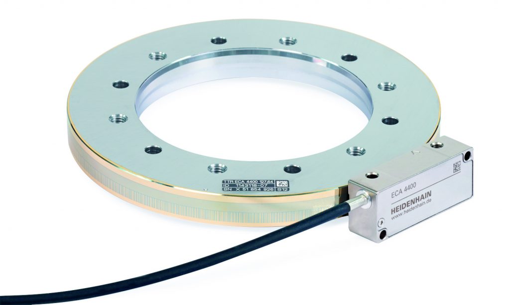 Beim Einsatz von Torquemotoren in Werkzeugmaschinen ist die Einstufung der Messgeräte für sicherheitsgerichtete Anwendungen nach SIL2 (nach EN61508) bzw. Performance Level ‚d‘ (nach EN ISO13849) häufig erforderlich. Denn hier werden die Rotationsachsen üblicherweise mit nur einem Messgerät betrieben. Dafür können die Functional Safety-Ausführungen der modularen Winkelmessgeräte ECA 4000 mit bidirektionaler EnDat 2.2-Schnittstelle in Verbindung mit einer sicheren Steuerung als Ein-Geber-Systeme eingesetzt werden. Neben der Datenschnittstelle ist jedoch auch die mechanische Ankopplung der Messgeräte sicherheitsrelevant. Der Nachweis einer sicheren mechanischen Verbindung kann für den Maschinenhersteller sehr aufwendig sein. Mit der Functional Safety-Ausführung des absoluten modularen Winkelmessgeräts erleichtert Heidenhain diesen Nachweis. Denn der mechanische Fehlerausschluss des Winkelmessgeräts für sicherheitsgerichtete Anwendungen ist im Rahmen einer Baumusterprüfung für einen breiten Einsatzbereich bestätigt und damit unter allen spezifizierten Betriebsbedingungen sichergestellt. So sind beispielsweise Werkstoff- und Oberflächeneigenschaften von Welle und Flanschbauteilen, Schraubenlängen, Schraubensicherungen, Anzugsmomente usw. definiert. Das modulare Winkelmessgerät ist mit einer Vielzahl von Durchmessern und in zwei Trommelformen verfügbar.