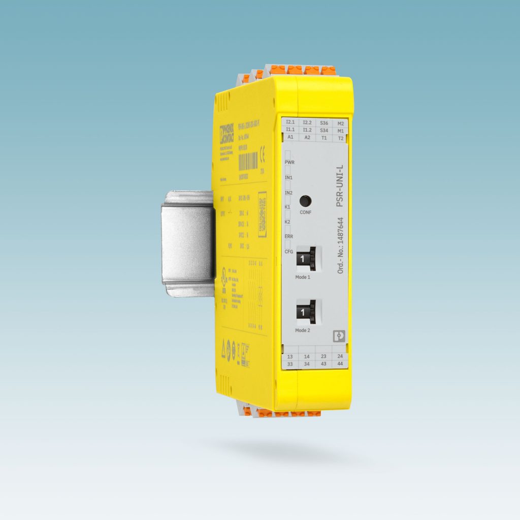 Mit dem multifunktionalen Sicherheitsrelais PSRuni von Phoenix Contact lassen sich bis zu zwei Sicherheitsfunktionen mit einem Gerät überwachen. Die umfangreiche Abdeckung gängiger Sicherheitsfunktionen erlaubt die flexible Konfiguration und Anpassung an individuelle Anforderungen. Das Sicherheitsrelais bietet eine multifunktionale Sicherheitslösung für eine Vielzahl von Anwendungen. Bei PSRuni L erfolgt die Konfiguration direkt am Gerät, was die Adaption an spezifische Anforderungen einfach macht. Aufgrund der Kompatibilität mit zahlreichen Sensoren und Aktoren ist eine nahtlose Integration in bestehende Systeme möglich. Das Sicherheitsrelais eignet sich besonders für die Überwachung von z.B. Not-Halt, Schutztüren und Lichtgittern. Neben der Multifunktionalität und dem Einsatz im sowohl ein- als auch zweikanaligen Betrieb erfüllt das Sicherheitsrelais PSRuni besonders hohe Sicherheitsstandards bis SIL 3 und PL e. Mit der Funktion des automatischen oder manuellen überwachten Starts, dem Push-in-Leiteranschluss oder der einfachen Installation und Wartung überzeugt das Gerät bei der Benutzungsfreundlichkeit.