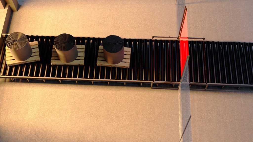 Die Sicherheitslichtgitter (Kategorie 4) der Reihen OY32 (Finger- und Handschutz) und OY36 (Körperschutz) von Ipf Electronic können optional mit einer Mutingfunktion ausgestattet werden. Die Sicherheitslichtgitter können hierzu durch das Mutingrelais AO98A980 und Mutingsensoren erweitert werden. Passiert Fördergut ein Lichtgitter, müssen die Mutingsensoren eine spezifische Signalreihenfolge generieren, um den Mutingzyklus zu starten. Eine Person ist somit nicht in der Lage, über das Mutingrelais mit einem Eingriff oder Zutritt in das Schutzfeld den Zyklus zu aktivieren. Mit dem optionalen Zubehör lässt sich sowohl ein sequenzielles als auch Kreuz-Muting realisieren. Beim sequenziellen Muting werden mehrere hintereinander geschaltete Sensoren (zwei vor und zwei nach dem Schutzfeld) der Reihe nach vom Fördergut innerhalb des Schutzfeldes aktiviert. Für das Kreuz-Muting sind nur zwei Sensoren erforderlich, deren Erfassungsbereich kreuzförmig angeordnet ist. Der Mutingzyklus startet, wenn beide Sensoren durch das Fördergut aktiviert werden. Die maximal zulässige Dauer des Mutingvorgangs lässt sich in 10 Stufen von 10s bis unendlich einstellen.