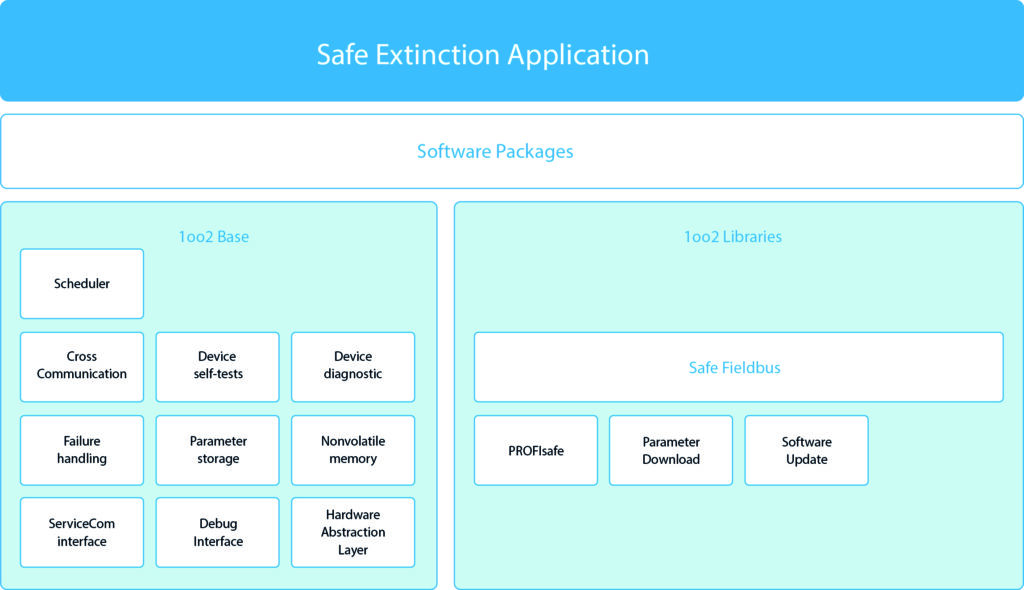 Die Sicherheit des Systems wird durch eine 1oo2 Safety-Architektur realisiert. Dabei muss von zwei unabhängigen Kanälen nur einer aktiv sein, um die Sicherheitsfunktion zu erfüllen. Im Falle eines Fehlers in einem Kanal, schaltet das System auf den anderen um. Sie wurde mit dem Mesco Safety Design Package entwickelt und verwendet als Hardwarebasis den Microcontroller STM32F745/746. Man erreicht somit ein Redundanzlevel HFT = 1 (Hardware Fault Tolerance) und die Sicherheitslevel SIL2 nach IEC 61508 und Kategorie 3, Performance Level d (PL d) nach ISO 13849. In diesen Brandschutz-Anwendungen müssen zusätzlich spezielle Anforderungen erfüllt werden, um die Explosionsschutzrichtlinien (wie ATEX, IECEx) zu erfüllen. Dazu gehören z.B. der Schutz gegen Funkenbildung, die Wahl bestimmter Materialien und die Einhaltung strenger Sicherheitsnormen. Da der GreCon Protector darauf ausgelegt ist, Funken zu erkennen und zu löschen, wurde er nach den relevanten Normen für den Ex-Bereich z. B. IEC 60079 (für Explosionsschutz) und IECEx entwickelt und zertifiziert (ATEX Zone 2). Die Software-Architektur umfasst die Kern-Artefakte Synchronisation und gegenseitige Überwachung der beiden CPUs, Selbsttests und Speichertests, sichere Task-Umschaltung sowie Nutzung sicherer Black-Channel-Kommunikation über UART. Baumer präsentiert den ersten Ultraschallsensor in Kompaktgröße, der die Marke von 3 Metern Reichweite knackt. ‣ weiterlesen