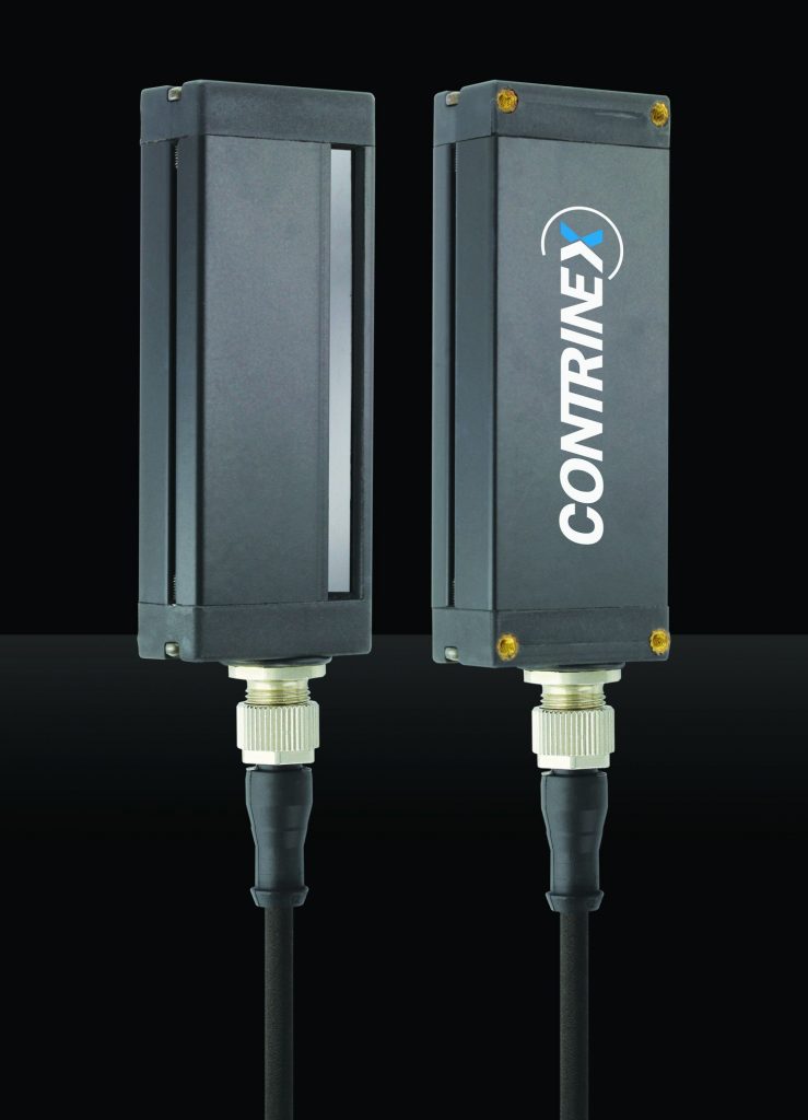 Berührungsloses Messen über Lichtgitter aus Infrarotstrahlen bietet viele Vorteile wie z.B. schnelle Ansprechzeiten, sicheres Erkennen von unterschiedlichsten Objekten und Störunempfindlichkeit gegenüber sichtbarem Fremdlicht. Gerade in Einsatzfeldern wie Logistik, automatisierten Verpackungsanlagen oder rauen Umgebungen wie Lagerräumen und der Holzindustrie zeigen die robusten Sensoren mit scharfem Blick ihr Potential. Mit den neuen Sensorbaureihen DGI- (schaltend) und MGI- (messend) stellt Contrinex kompakte Infrarot-Lichtgitter als robuste Plug-and-Play-Lösung vor. Bei einer Grundfläche von 40×20,5mm fügen sich die platzsparend ausgelegten Sensoren leicht in unterschiedliche Anlagen ein. Die schaltende DGI-Variante kann dabei bis zu 2010 mm Detektionshöhe abdecken und erkennt je nach Variante Objekte mit Durchmessern ab 0,9, 2, 4, 8 oder 25mm. Mit den Ansprechzeiten zwischen 0,8 und 4,8ms werden auch kleine Objekte mit hoher Geschwindigkeit sicher erkannt und gezählt. Die Einsatzfelder reichen von der Kleinteile- und Folienproduktion über Verpackungsapplikationen bis hin zur Pharmaindustrie. Die messende MGI-Ausführung ermittelt neben der Präsenz des Objektes auch gleich dessen Dimensionen und seine Position. Die Sensoren können bis zu 1.438mm Messbereichshöhe abdecken, die Auflösung beträgt 5 oder 12mm. Die Messwerte werden als analoges 0…10 V- oder 4-20mA-Signal ausgegeben. Typische Einsatzgebiete für die messenden Infrarot-Sensoren gibt es in der Logistik, bei automatisierten Verpackungsanlagen, in Lagerräumen oder der Holzindustrie.