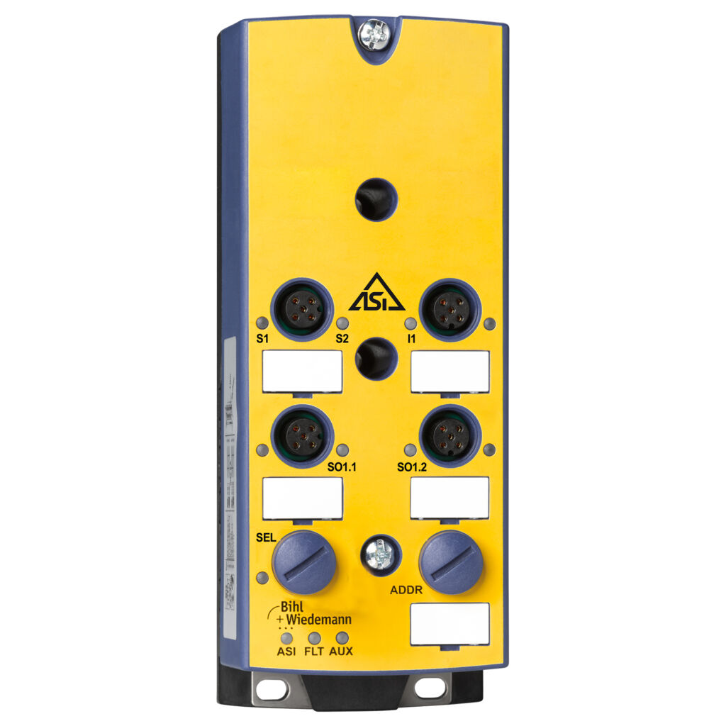 Mit dem I/O-Modul BWU4379 für ASi Safety at Work in Schutzart IP67 erweitert Bihl+Wiedemann sein Sortiment für die funktionale Sicherheit. Das Relais in IP67 verfügt über einen sicheren Relaisausgang mit galvanisch getrennten Kontaktsätzen, einen zweikanaligen sicheren Eingang bis SIL3/Kat.4 für potentialfreie Kontakte sowie einen digitalen Eingang. Über den sicheren Ausgang lässt sich zum einen ein sicher geschalteter AUX-Abzweig im Feld und damit passive Sicherheit erzeugen, zum anderen können verschiedene Anlagenteile mit unterschiedlichen Potentialen sicher gekoppelt werden – in IP67 mit einem einfachen M12-Kabel. Die Versorgung des Moduls mit ASi und AUX erfolgt jeweils über Profilkabel per Durchdringungstechnik. Die Anbindung der Peripherie wird über vier fünfpolige M12-Buchsen realisiert.