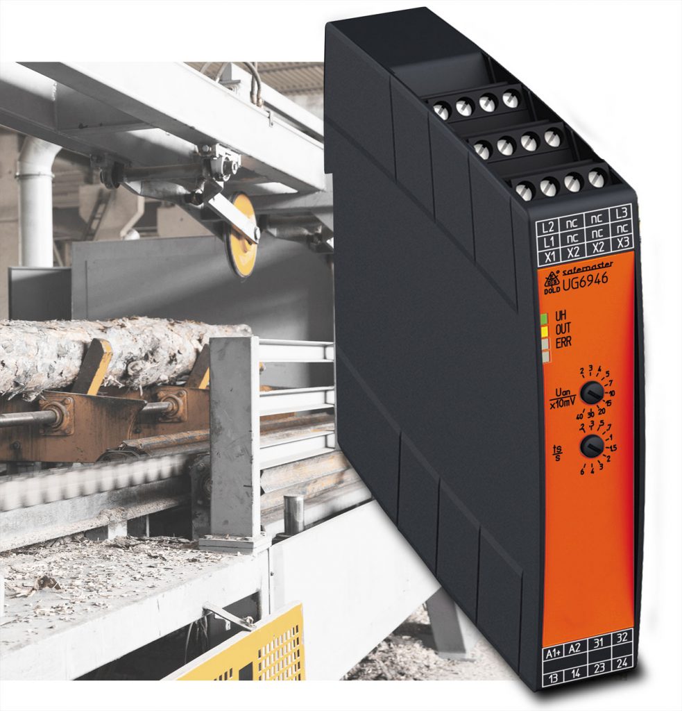 Bei Wartungs- und Servicearbeiten oder der Behebung von Fehlern an Maschinen und Anlagen ist häufig ein Eingreifen während des Produktionsprozesses notwendig. In vielen Anwendungen sind die Zugangsbereiche mittels Schutztüren abgesichert. Eine Entriegelung der Schutztüre darf erst erfolgen, wenn bewegliche Anlagenteile zum Stehen kommen. Hier ist der sensorlose Stillstandswächter UG 6946 der Safemaster S-Serie von Dold mit seiner Baubreite von 22,5mm geeignet. Geht von der Maschine keine gefahrbringende Bewegung mehr aus, kann bei erkanntem Stillstand direkt und innerhalb kürzester Zeit die Schutztüre freigegeben werden. Der sensorlose Stillstandswächter kann einfach nachgerüstet werden und ist daher auch für Retrofitting geeignet. Durch den Wegfall von Sensoren oder Encodern ist eine einfache Installation möglich. Der Stillstandswächter erfüllt SIL 3 bzw. PL e/Kat. 4.