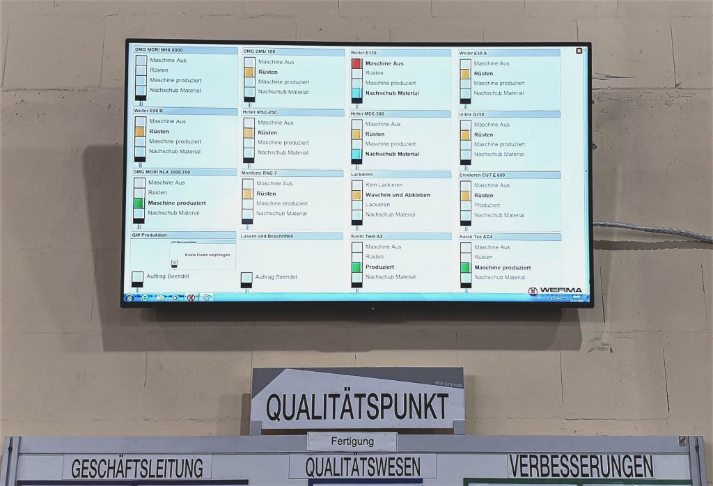 Vetec Ventiltechnik beschäftigt am Standort in Speyer derzeit rund 120 Mitarbeiter und ist eine Tochtergesellschaft des Samson-Konzerns. Das Unternehmen besitzt einen großen und modernen Maschinenpark. Im Bereich der NC-Fertigung finden sich hier neben drei großen Horizontalfräsmaschinen mit einem maximalen Aufspanngewicht von drei Tonnen zahlreiche zyklengesteuerte NC-Drehmaschinen, Bearbeitungszentren, CNC-Drehmaschinen und Bandsägen. Fachkräfte stellen im Zwei-Schichtbetrieb Gehäuse sowie Innen- und Antriebsteile für die Ventile her. Neben kohlenstoffhaltigem und nicht-rostendem Stahl werden in Speyer zudem Werkstoffe wie Titan, Zirkon sowie zahlreiche Sonderlegierungen verarbeitet. Sven Donner ist seit knapp zwei Jahren als Produktionsleiter im pfälzischen Unternehmen tätig. Der 34-jährige Maschinenbauingenieur hatte von Beginn an die Produktivität des Maschinenparks im Blick. Er betont, wie wichtig es für ihn und das Unternehmen ist, „die Prozesse und Abläufe auf Knopfdruck auswerten und vor allem in Echtzeit überwachen zu können“. Für Donner war es von großer Bedeutung, die Rüstzeiten der Maschinen exakt messen und auswerten zu können: „Wir als Produzent von Sonderlösungen im Maschinenbau fertigen meist in der Losgröße 1 – da ist es elementar, die Rüstzeiten im Griff zu haben.“ Er erklärt weiter: „Bislang gab es bei Vetec kein Maschinen-Daten-Erfassungssystem (MDE-System), auf welches wir hätten zurückgreifen können, daher musste rasch eine Lösung gefunden werden.“ Fündig wurde der Spezialist für Ventil-Regelaufgaben bei Werma Signaltechnik im süddeutschen Rietheim-Weilheim: Der Hersteller von Signalgeräten bietet ein einfaches, funkbasiertes MDE-System an, welches sich jederzeit nachrüsten lässt. Dabei ist Smart Monitor eine MDE-Alternative für Industrieunternehmen, die auf Knopfdruck belastbare Daten für die Optimierung ihrer Fertigungsprozesse suchen. Donner plädierte daher für die Installation des Systems: „Es war einfach klasse, sofort mit der Text-Box von Werma loszulegen und das MDE-System live in der eigenen Produktion testen zu können.“