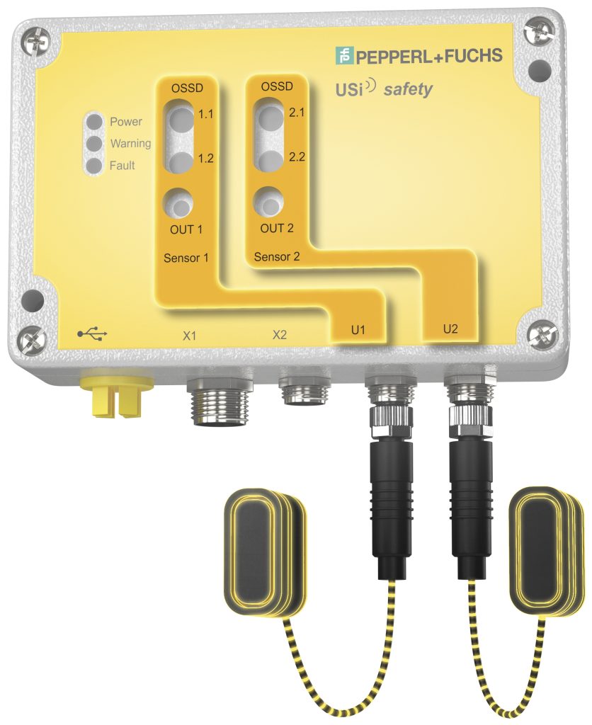 Wo Mensch und Maschine interagieren, ist zuverlässige Absicherung gefordert. Das USi-Safety-System gewährleistet sie auf Basis der bauartbedingten Robustheit der Ultraschallsensorik. Die Trennung der eigentlichen Sensorkomponente von der Auswerteeinheit ermöglicht eine kompakte Bauform. Die Geräte können auch in beengten Umgebungen installiert werden. Neben dem Zugangsschutz in Sicherheitsbereichen bietet das System flexible Lösungen für autonom agierende Einheiten wie Roboter und selbstfahrende Transportsysteme. Das Ultraschallsystem ist nach EN ISO13849 Kategorie 3 PL d zertifiziert. Die Ultraschallwandler erfüllen die Vorgaben der Schutzart IP69K, sind für den Außeneinsatz geeignet und vertragen eine Hochdruckreinigung. Ihre Schallkeulen besitzen einen elliptischen Querschnitt und damit einen großen Erfassungsbereich. Die Sicherheitsarchitektur beruht auf einer durchgängig zweikanaligen Elektronik mit fehlersicheren Ausgängen und zwei einander überwachenden Mikrocontrollern.