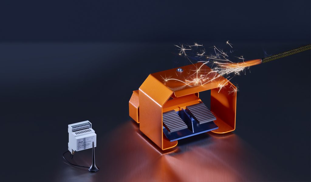 Der Steute-Geschäftsbereich Controltec erweitert das Programm an Funk-Fußschaltern um eine Variante, die für Heavy-Duty-Einsätze u. a. an Schweißstationen entwickelt wurde. Der Einsatz von Funk-Fußschaltern ist hier besonders sinnvoll, weil die Lebensdauer von kabelgebundenen Fußschaltern durch Schweißspritzer beeinträchtigt wird, die das Kabel beschädigen. Außerdem können die Kabel im betrieblichen Alltag zu Stolperfallen werden. Allerdings sind konventionelle Fußschalter für diesen Anwendungsfall ungeeignet, weil ihre Schutzhauben nicht groß genug sind, um Bedienern mit schweren Sicherheitsschuhen die erforderliche Bewegungsfreiheit zu ermöglichen. Deshalb hat der Anbieter für diese und ähnliche Heavy-Duty-Anwendungen eine robuste und besonders große Schutzhaube aus pulverbeschichtetem Stahl konstruiert. Sie wird mit den Funk-Fußschaltern verbunden und bietet genug Raum für die Bedienung der beiden Pedale auch mit schweren, vor Schweißspritzern schützenden Sicherheitsschuhen. Zugleich verhindert die Schutzhaube ein unbeabsichtigtes Betätigen der Pedale. Eine Tragestange vereinfacht den flexiblen Einsatz des Fußschalters.