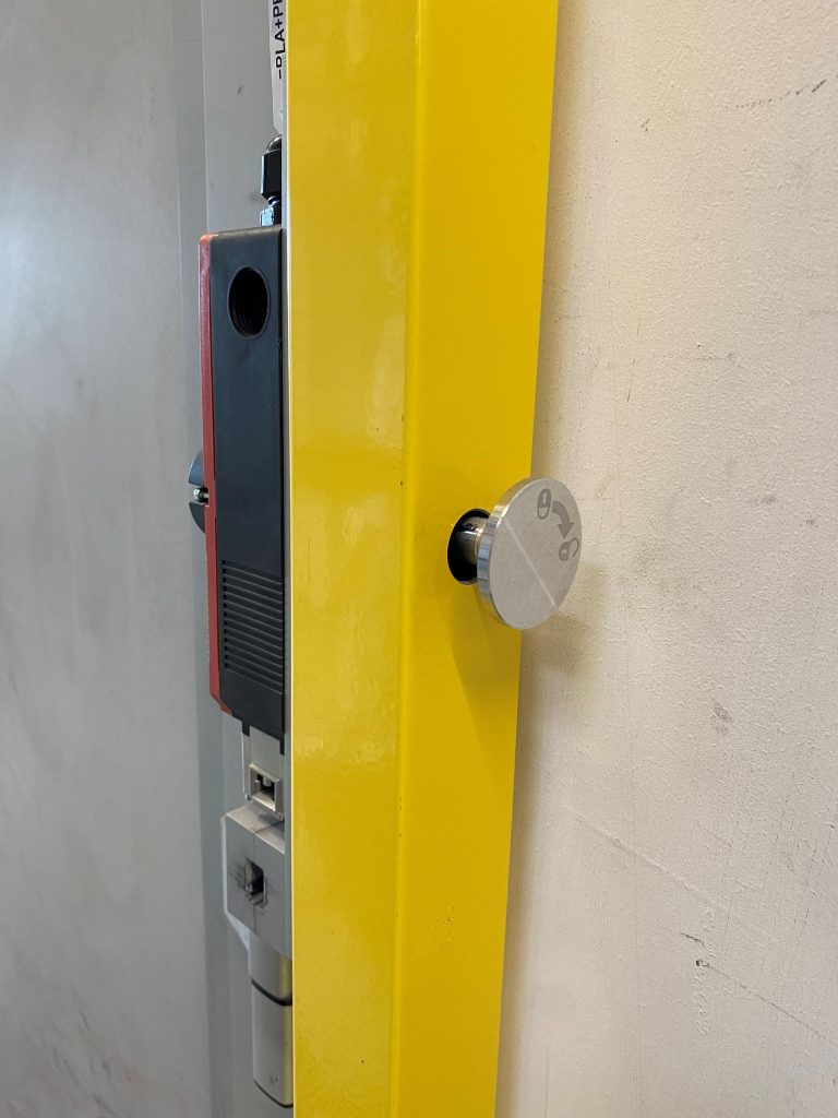Die Fluchtentriegelung, auf der Rückseite des SLC befindlich, ermöglicht durch Drehen ein sofortiges Öffnen von innen, sollte ein Notfall auftreten. – Bild: Bernstein AG