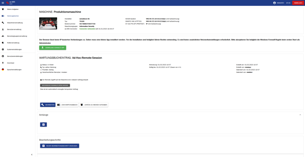 Der se.MIS Manager ist die Kernkomponente der Plattform. Dort konfigurieren die Anwender sämtliche Wartungsbücher für Maschinen und Anlagen sowie die dazu notwendigen Berechtigungen. Das digitale Wartungsbuch, das sämtliche Fernzugriffe auf die angeschlossenen Systeme und Anlagen dokumentiert, agiert als zentrales Element. Dabei ist die Integration und Anbindung an Identity-Provider mit Hilfe von OpenID-Connect, neben LDAP und lokalen Nutzern, wichtig. Es können mehrere externe Datenquellen eingerichtet und kombiniert werden. So kann man nur Benutzer berechtigen die sowohl im internen LDAP als auch in einem externen IDP angelegt wurden. Daher ist se.MIS beim Berechtigungsmanagement sehr flexibel auch an die Bedürfnisse großer Unternehmen anpassbar. Die Zugriffe erfolgen über ein Berechtigungsmodell mit unterschiedlichen Rollen und Benutzergruppen, das exakt definiert, wer wann und wie lange auf ein Zielsystem zugreifen darf. Damit können interne Mitarbeiter auch befristete Wartungssitzungen für externe Techniker freischalten. Auf Wunsch wird dann nicht nur protokolliert, wann und wie lange die Benutzer mit dem Zielsystem verbunden waren, sondern es kann über Videoaufnahme und erstelltem Protokoll der ausgeführten Befehle auch detailliert nachvollzogen werden, welche Aktionen ausgeführt wurden. Wobei dies davon abhängt ob es grafische Sitzungen der IP-Verbindungen sind. Dabei kommt entweder PLC-Guard zum Einsatz oder man kann die Dateien mit Wireshark öffnen, oder anderen Tools die PCAPs verarbeiten können.