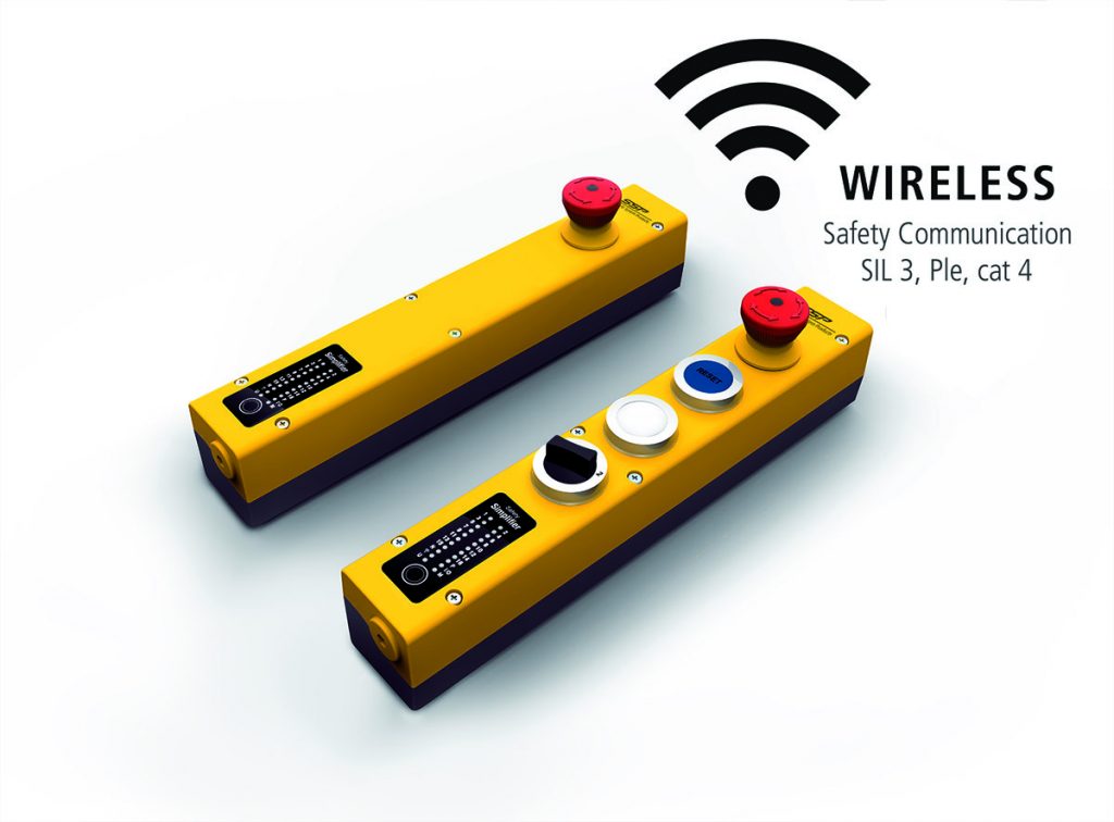 Mit dem Safety Simplifier präsentiert SSP eine Sicherheitslösung für SIL 3, Ple, cat. 4. Alle Sicherheits- und Informationssignale werden über ein patentiertes Wireless-System zwischen den Modulen bis hin zum Schaltschrank kabellos ausgetauscht. Lediglich für die Spannungsversorgung wird ein Kabel benötigt, das über jedes beliebige 24VDC Potential gespeist werden kann. Die neue Lösung lässt sich modular an die Applikation des Kunden anpassen und kann mit verschiedensten Bedienelementen, beispielsweise Wahlschalter oder Drucktastern zum Anfordern und Quittieren ausgestattet werden. Sicherheitssensoren, Lichtvorhänge, Türzuhaltungen oder Zustimmtaster werden vor Ort an das System angeschlossen. Der Verkabelungsaufwand wird somit reduziert und gleichzeitig spart der Anwender den Einsatz einer Sicherheitssteuerung.