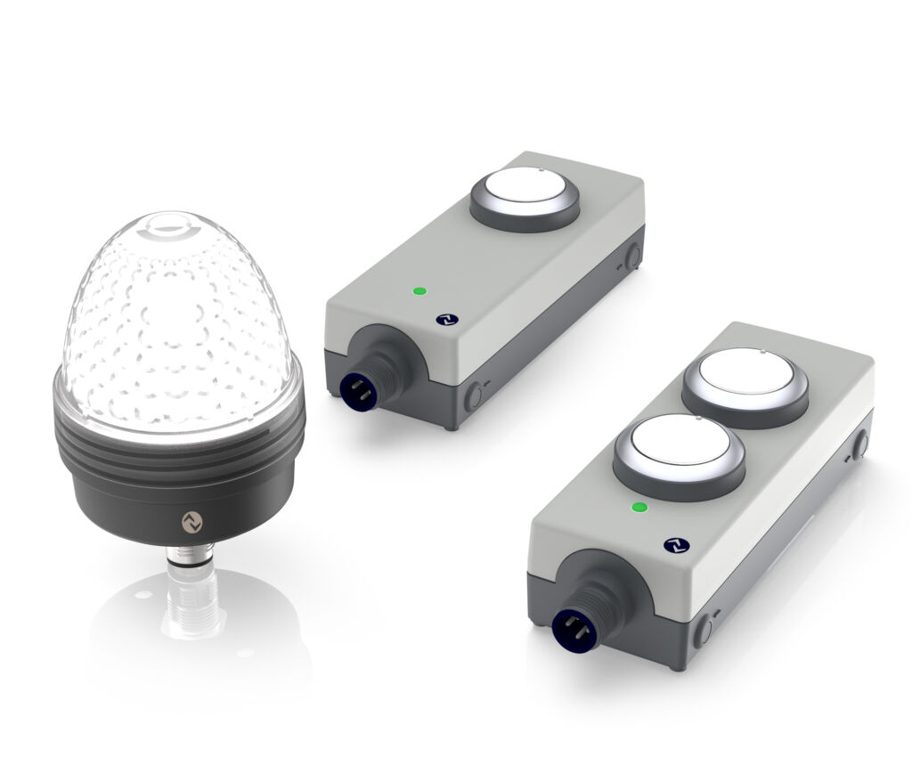 Die kompakten Tastermodule des Typs E-Box IO-Link vereinen zwei Leuchtdrucktaster aus dem Befehlsgeräteprogramm Rafix 22 FS+ in einem schlanken IP65-Gehäuse. Ihr M12-Anschluss gewährleistet eine einfache Montage und Inbetriebnahme auch von ungeschultem Personal. Dabei beugt die IO-Link-Geräteidentifikation möglichen Installationsfehlern vor, da falsch verbaute Geräte automatisch an die Steuerung gemeldet werden. Die Leuchtdrucktaster der E-Box, die dank integriertem Micon 5 Kurzhubtaster ein prägnantes taktiles Feedback aufweisen, lassen sich remote über IO-Link mit vielfältigen Funktionen individualisieren. Dazu zählen ein Nachtmodus mit verschiedenen Helligkeitsstufen und die freie Farb-Auswahl der Tasterausleuchtung in fünf Standard- oder drei individuell einstellbaren RGB-Farben aus einem Spektrum von 16 Millionen verschiedenen Farben. Zudem können die Taster mit vier verschiedenen Blinkmodi für unterschiedliche Anwendungsfälle konfiguriert werden. Die vielfältigen Einstellungsoptionen für Tasterfarben, Helligkeit und Blinkmodi reduzieren den Aufwand in der Lagerhaltung, da sich die E-Box IO-Link einfach über die Steuerung für verschiedene Anforderungen konfigurieren lässt.