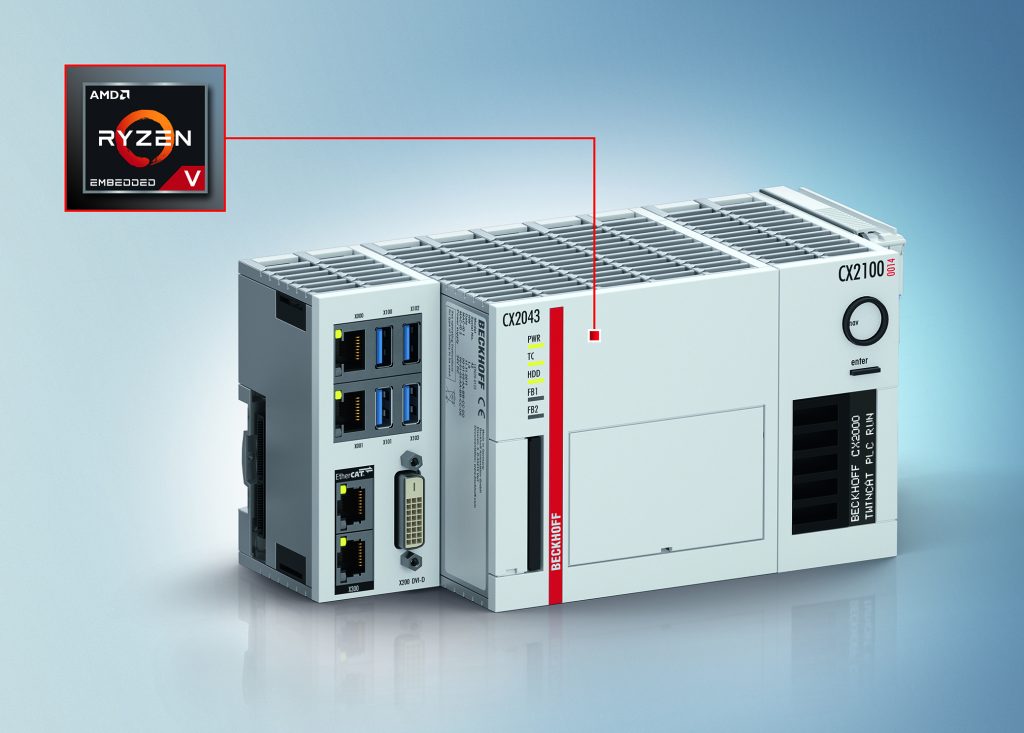 Mit den Embedded-PCs C20x3 umfasst das IPC-Spektrum von Beckhoff auch Geräte mit AMD-Ryzen-Prozessor. Damit steht eine leistungsfähige Hardware zur Verfügung, die sich sowohl mit der Automatisierungssoftware TwinCAT 2 als auch TwinCAT 3 nutzen lässt. Als Betriebssystem kann Microsoft Windows 10 IoT Enterprise 2019 LTSC oder TwinCAT/BSD eingesetzt werden. Die AMD-Prozessoren basieren auf der Zen-Architektur und bieten in Verbindung mit der hohen Taktfrequenz eine hohe Rechenleistung. Hinzu kommt eine integrierte und vom CPU-Cache separierte Grafik, was gute Echtzeiteigenschaften ermöglicht.