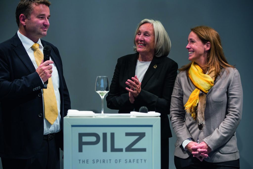 Auf der SPS IPC Drives fand am Abend des 29. Novembers die feierliche Verabschiedung von Renate Pilz (m.) statt, die sich Ende des Jahres aus der Geschäftsleitung des Automatisierungsanbieters zurückzieht. Zahlreiche Kunden, Partner, Wegbegleiter und Mitarbeiter kamen zu dem Event, um gemeinsam mit Renate Pilz auf ihre erfolgreiche berufliche Laufbahn zurückzublicken. Besonders ihre Kinder Thomas Pilz (l.) und Susanne Kunschert (r.), die die Aufgaben von Renate Pilz übernehmen werden, haben ergreifende Worte gefunden. Begleitet wurde der Abend mit klassischer Musik.