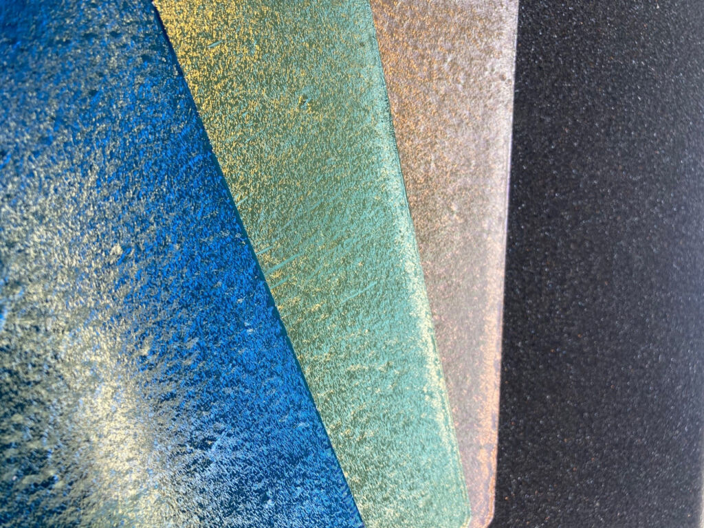 Als Verfahren dient die Kathodenzerstäubung im Vakuum (Sputterdeposition), bei der eine Plasmaentladung Atome aus einem Target herausschlägt, die sich dann auf der Oberfläche des Werkstücks niederschlagen. Auf diese Weise entsteht eine hauchdünne und sehr homogene Metalloberfläche. Nach dem Sputtern verlässt der Substratträger die Vakuumkammer über eine zweite Schleuße. Und es erfolgt die zweite UV-Lackierung. Hierbei können auch farbige Lacke verwendet werden; Die Gestaltungsmöglichkeiten sind dadurch extrem vielfältig.
