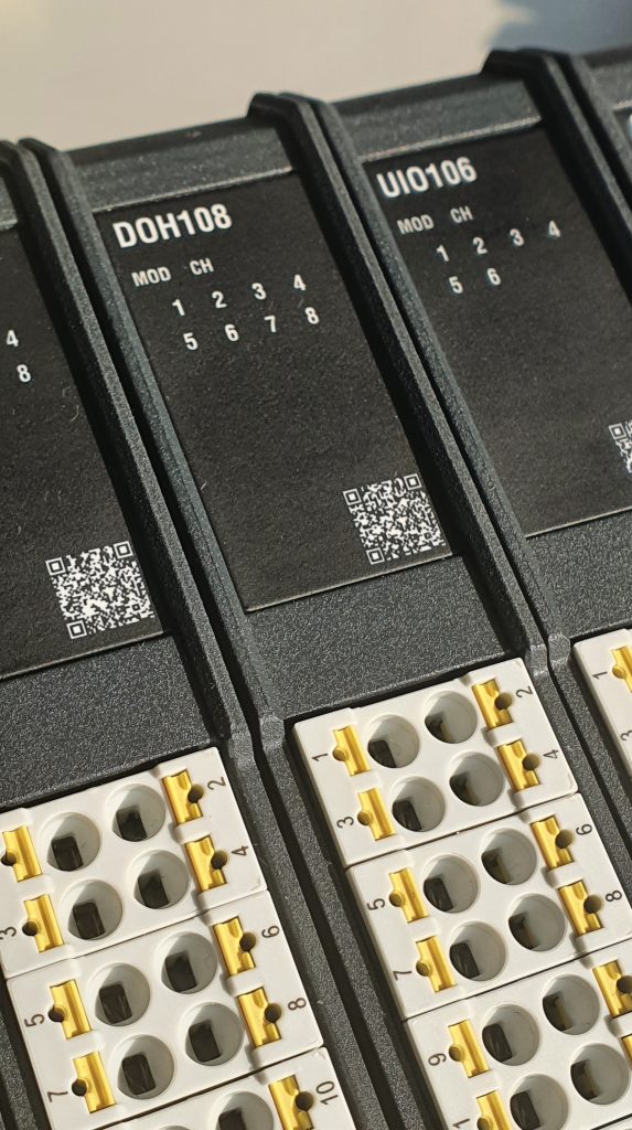 Sieben verschiedene Typen digitaler I/O-Module umfasst das M100-IO-System von Bachmann. Damit deckt das System unterschiedliche Anforderungen bei der digitalen Übertragung von Signalen ab. Im Anzeigefeld kann ein 2D-QR-Code mit industriellen Scannern sowie mit jedem handelsüblichen Smartphone oder Tablet ausgelesen werden. Dann werden Gerätebezeichnung, Artikel- und Seriennummer unmittelbar angezeigt. Ein Weblink zu einem umfassenden Informationssystem bietet den Zugriff auf das Handbuch sowie anderen Daten über das Modul und das mit nur einem Klick. Die Modultypen mit Einleiteranschluss verfügen über eine maximale Kanaldichte von bis zu 24 Kanälen pro IO-Slot.