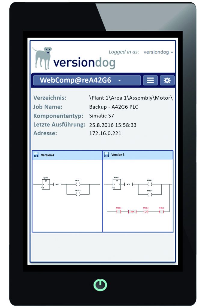 Im Rahmen der neuen Versiondog-Version 5.5 stellt Auvesy auf der SPS IPC Drives 2017 eine neue App zur mobilen Versionsverwaltung und Änderungserkennung von Steuerungsprojekten vor. Die Lösung ermöglicht den Zugriff auf Projektstände von Steuerungen per Smartphone oder Tablet und erleichtert damit die Projektüberwachung automatisierter Industrieanlagen. Die App wird sowohl für Android- als auch iOS-Endgeräte zur Verfügung stehen. Änderungen an Projekten und daraus resultierende neue Versionen lassen sich so von unterwegs nachvollziehen und überprüfen. Mit der Integration des SmartCompares in die App lassen sich Projektunterschiede und Änderungen auch auf mobilen Endgeräten dartellen und grafisch visualisieren. Werden Fehler oder ungewollte Änderungen festgestellt, sind die Informationen umgehend mit Kollegen über Messenger-Dienste teilbar oder lassen sich per Mail versenden. So lassen sich Fehlprogrammierungen schnell korrigieren und Ausfallzeiten verkürzen. Durch das Scannen eines QR-Codes auf Geräten in der Anlage können zudem Details zu Projektständen einzelner Steuerungen und Roboter in der App aufgerufen werden.
