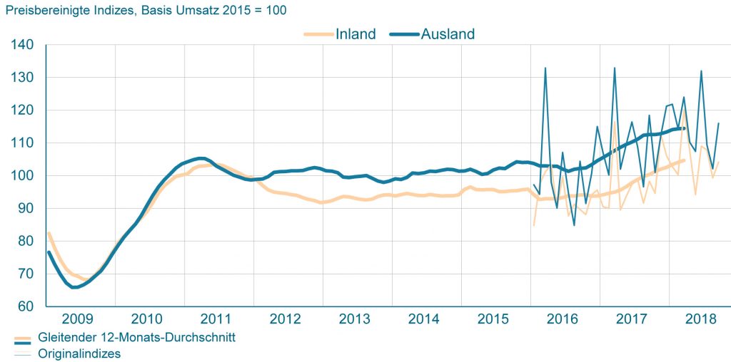 Im September konnte der Auftragseingang im Maschinen- und Anlagenbau lediglich sein Vorjahresniveau halten, für eine Plusrate wie in den Vormonaten hat es nicht gereicht. „Die Unternehmen spüren die Verunsicherung der Kunden aufgrund der vielen weltpolitischen Baustellen, Handelssanktionen und protektionistischen Ankündigungen“, erläutert VDMA-Finanzexperte Dr. Ralph Wiechers. In Summe sanken die Auslandsbestellungen um real 2%, wobei der Rückgang im Euroraum 1% betrug, aus den Drittländern kamen 2% weniger Bestellungen. Die Inlandsbestellungen legten dagegen um 6% zu. Im Dreimonatsvergleich Juli bis September lagen die Bestellungen insgesamt um real 3% über dem Vorjahreswert. Das Inland verbuchte in diesem Zeitraum einen Auftragszuwachs von 8%, die Auslandsbestellungen legten um 1% zu.