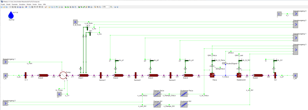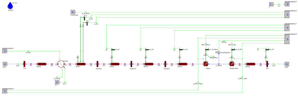 Zur Vermessung der bauartbedingten Volumenstrompulsation von Automotive-Hydraulikpumpen müssen Belastungseinheiten am Prüfstand hoch genau eingestellt und nachgeführt werden. Das ist Aufgabe der SPS-Steuerungssoftware, die die Zustandsgrößen (Sensorinformationen) verarbeitet und entsprechende Ausgangsgrößen (Aktorpositionen) erzeugt. Der SPS-Programmierer steht im Vorfeld vor der Aufgabe, eine Software zu erstellen, ohne das physikalische Verhalten einzelner Komponenten im System zu kennen – z.B. Reibung oder Hysterese – und kann seine Algorithmen erst ausführlich testen, wenn der Pumpenprüfstand in der Realität existiert.