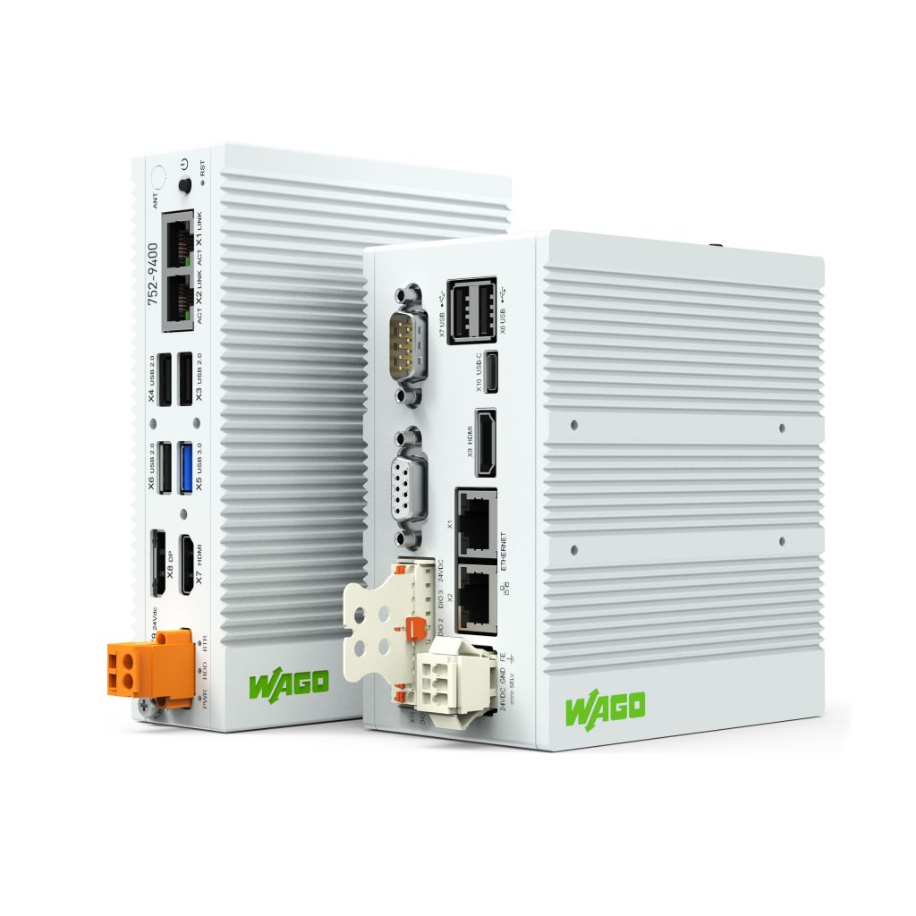 Wago hat zwei neue Edge-Devices vorgestellt. Der neue Edge Controller arbeitet mit einem ARM-Cortex-A9-Quadcore-Prozessor und verfügt über eine umfangreiche Schnittstellenausstattung, z.B. 2x Ethernet, CANopen und 2x USB. Ein serieller Port sowie vier digitale Ein-/Ausgänge dienen für die Anbindung lokaler Geräte oder Sensoren. Die Projektierung des Edge Controllers erfolgt in der gewohnten Engineering-Umgebung und gliedert sich damit nahtlos in das Produktumfeld der Anbieters ein. Die neuen Edge-Computer von Wago arbeiten mit Quadcore-Atom-Prozessoren (1,91GHz) und sind mit einem Standard-Debian-Linux ausgestattet. Der bereits vorhandene, 64GB-Flash-Speicher lässt sich durch den Einbau einer SSD-Platte für sehr große Datenmengen erweitern. Da die Edge Computer trotz des erweiterten Temperaturbereichs von -20 bis +60°C ohne Lüfter auskommen, sind sie sehr kompakt und lassen sich so einfach integrieren. Auf allen Wago-Edge-Devices kann Standardsoftware wie Node-Red verwendet werden. Sie kommunizieren sowohl auf dem Factory-Floor als auch in Richtung Cloud mit allen üblichen Protokollen.