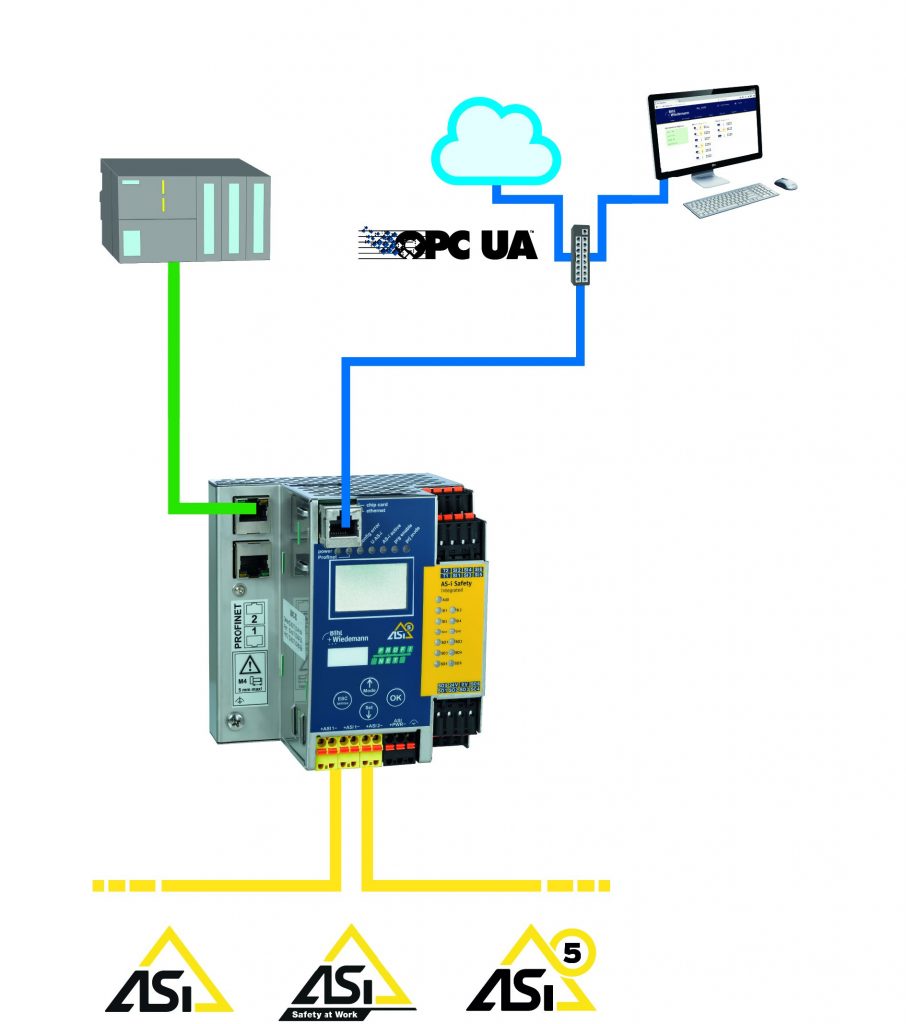 Dies ist der eine Aspekt der verbesserten Konnektivität mit ASi-5 – der andere heißt OPC UA. Die plattformunabhängige, standardisierte Kommunikationsarchitektur ist in der Lage, Maschinen- sowie Sensordaten, Messwerte oder Regelgrößen zu transportieren und – das ist die für die Digitalisierung relevante Verbesserung – auch maschinenlesbar semantisch zu beschreiben. OPC UA ist interoperabel und auf industrielle Konnektivität ausgelegt: Größere Mengen an Daten werden ohne Einschränkung dorthin transportiert, wo aus ihnen wertvolle Informationen gewonnen werden – etwa in cloudbasierte Applikation des Condition Monitoring oder der Predictive Maintenance. Mit dem OPC UA Server, den die Firma Bihl+Wiedemann standardmäßig in ihre neuen ASi-5/ASi-3 Gateways für Profinet, Ethernet/IP oder Ethercat integriert hat, ist somit auch Daten-Streaming im Sinne von Edge Computing ohne Umwege parallel zum jeweiligen Feldbus möglich.