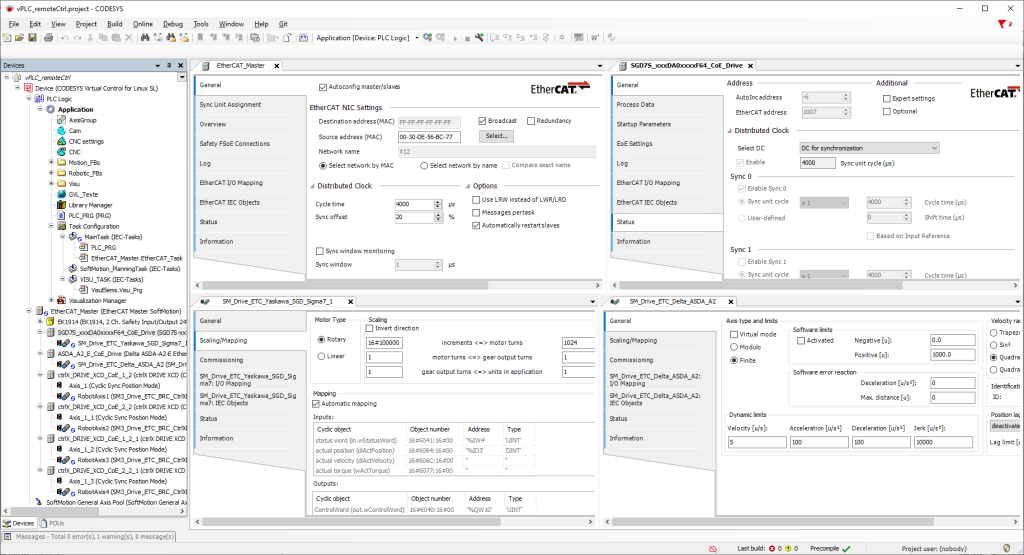 Zur Realisierung von koordinierten Verfahrbewegungen für Motion-, CNC- oder Robotikaufgaben benötigt man geeignete Servoantriebe mit digitalen Feldbusschnittstellen. Aufgrund ihrer Echtzeitfähigkeit haben sich CANopen und zunehmend Ethercat als Bussysteme etabliert. Allein die in Codesys integrierte Motion-Lösung bietet spezifische Treiber für CANopen- und Ethercat-Antriebe von mehr als zwei Dutzend Herstellern sowie generische Treiber für CiA402/CoE- und SoE-kompatible Systeme.