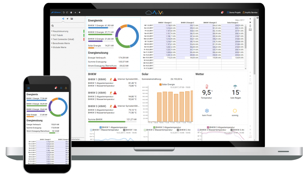 Um eine stationäre IoT-Lösung zu schaffen, müssen in der Regel Hardware und Softwarelizenzen beschafft, sowie in Arbeitsaufwendungen investiert werden. Die sind zwar in einem endlichen Zeitraum abgeschrieben, dennoch lohnt sich ein genauer Blick auf die Konditionen. Denn viele Produkte sind an Wartungsverträge geknüpft und Hardware muss aufgrund von Alterung oder Defekt erneuert werden. Zudem beanspruchen Updates und Backups Zeit. Wer die laufenden Kosten planbar haben und Zeit sparen möchte, setzt auf eine Cloudlösung mit georedundanter Datensicherung und kostenlosem Support. Für das Portal AnyViz fallen keine Investitionskosten an. Je nach Nutzungsumfang wird nach einem transparenten Tarifmodell abgerechnet.