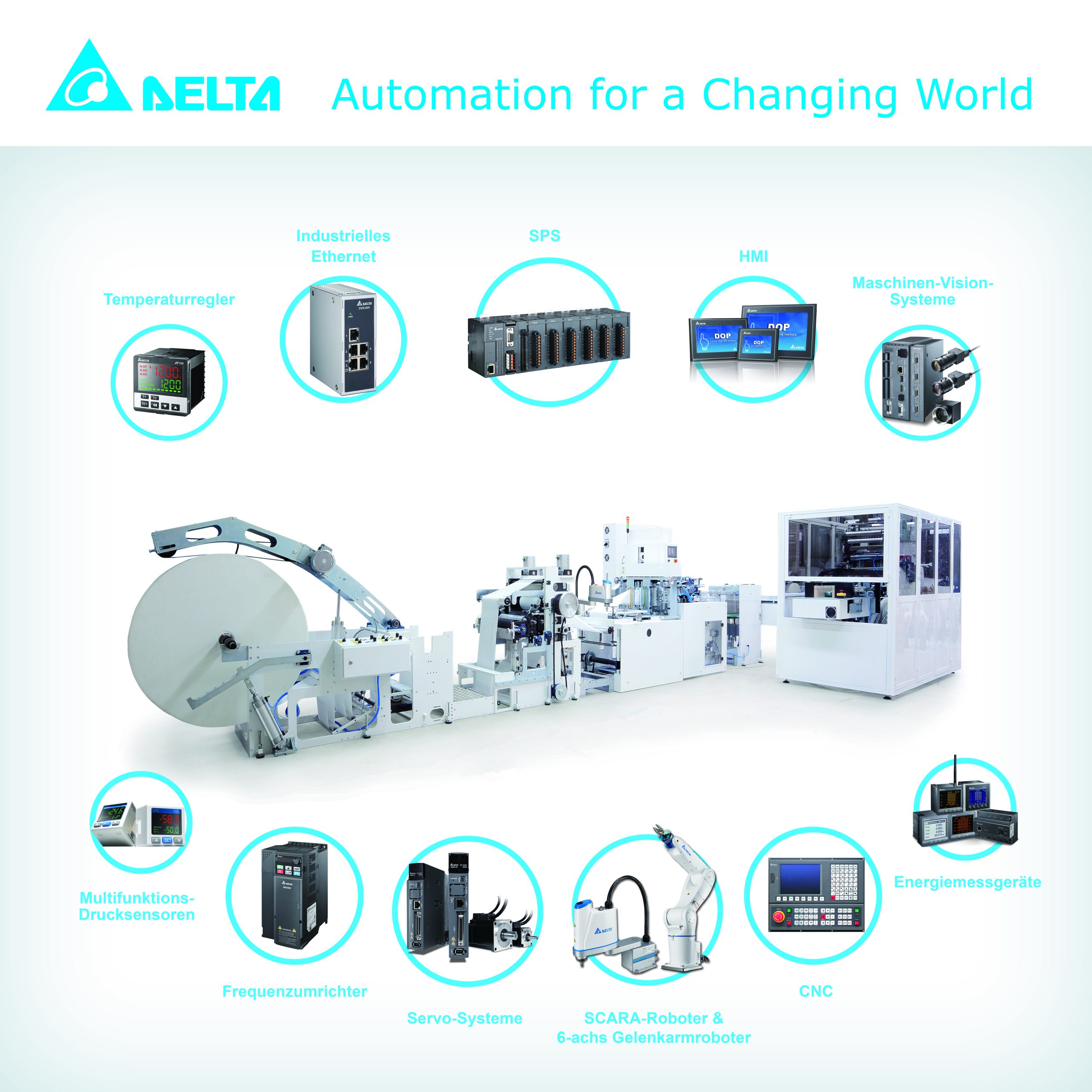 Delta bietet eine umfassende Palette an leistungsfähigen und zuverlässigen Automatisierungsprodukten sowie -lösungen von der Stromversorgung, Sensorik und Messtechnik über Kommunikations-, Steuerungs- und Antriebstechnik bis hin zu Informationsüberwachungs- sowie -managementsystemen, wie Scada und Industrial EMS, und nicht zu vergessen unsere Roboterlösungen.