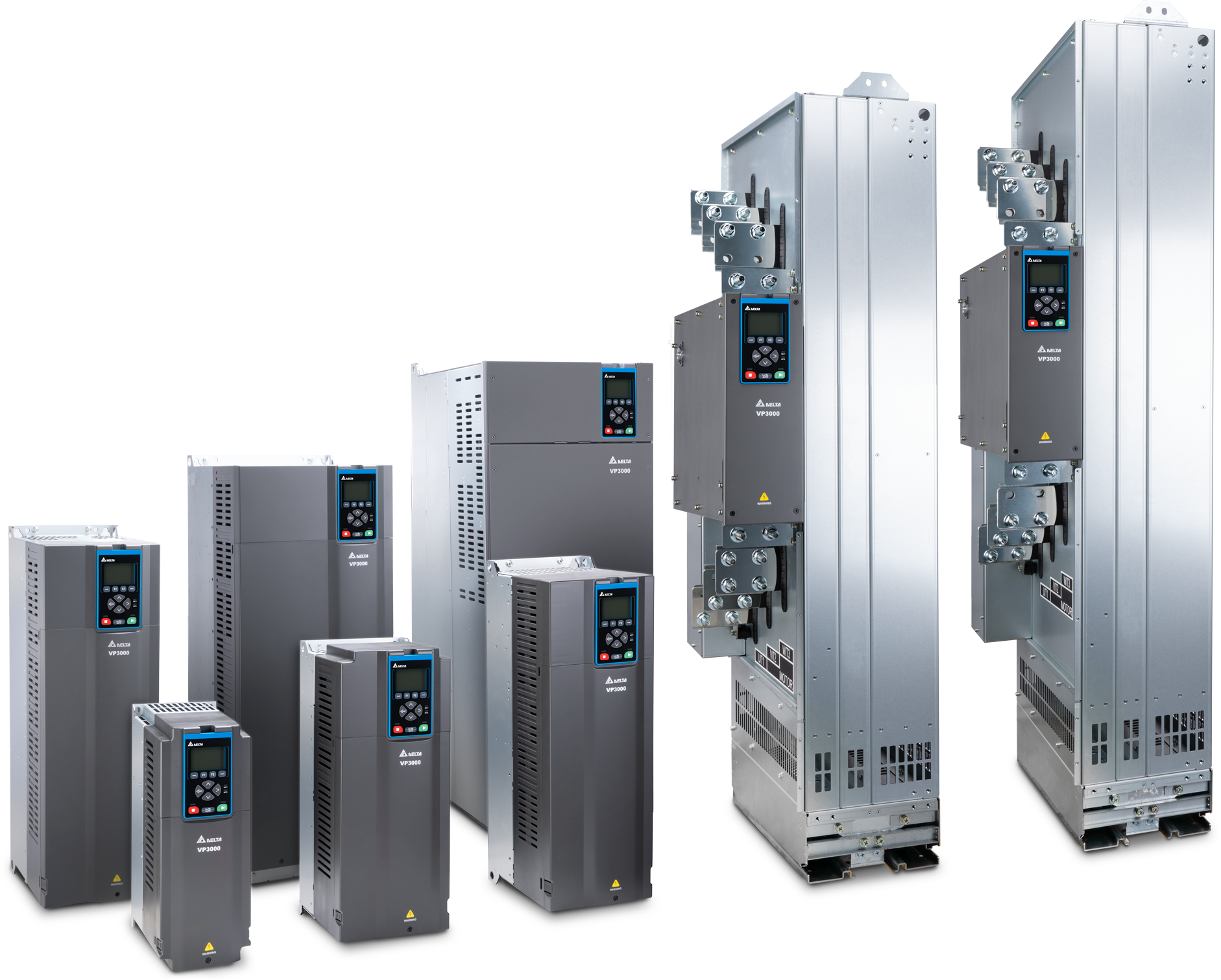 Ein weiteres Highlight sind die kompakten Multi-Achssteuerungen der MX300-Serie. Das System besteht aus einem Gleichrichtermodul pro Einheit sowie den entsprechenden Antriebsmodulen. Dadurch lässt sich der Platz im Schaltschrank sehr gut ausnutzen. Je nach Kundenanforderung bietet die MX300 eine flexible Auswahl zwischen ein-, zwei- und drei geregelten Antriebsausgängen. Ein einziges Gleichrichtermodul kann bis zu sechs Umrichtermodule unterstützen und bis zu 15 Achsen steuern. Im Vergleich zu einer herkömmlichen Struktur, die 15 Antriebseinheiten erfordert, kann ein Satz MX300 15 Motoren steuern, was eine Platzersparnis von bis zu 50 Prozent bedeutet. Die Geräte liefern ein Startdrehmoment von 200 Prozent bei niedriger Drehzahl und eine hohe Überlastfähigkeit von 150 Prozent für 60 Sekunden und 200 Prozent für drei Sekunden. Der MX300 unterstützt PM- und IM-Motoren mit zwei unabhängigen Motorparametersätzen und ermöglicht einen hocheffizienten und stabilen Betrieb. Durch die Plug-in-Montage kann das jeweilige Modul zur Wartung einfach herausgenommen werden, wodurch sich der Verdrahtungsaufwand um 40 Prozent und die Montagezeit um 30 Prozent verringert. Zusätzlich zu den Verbesserungen an unseren IIoT-Lösung wird Delta auch den neuen VP3000 Open-Loop-Standard-Drehmomentregler für Lüfter, Pumpen und Verdichteranwendungen vorstellen. Er ist speziell konzipiert, um die Effizienz in der Fluidtechnik zu steigern und er verfügt über eine hohe Leistung von bis zu 630kW. Dabei erhöht der VP3000 die Produktivität durch eine Reduzierung der Oberwelligkeit Faktor von bis zu 35 Prozent.
