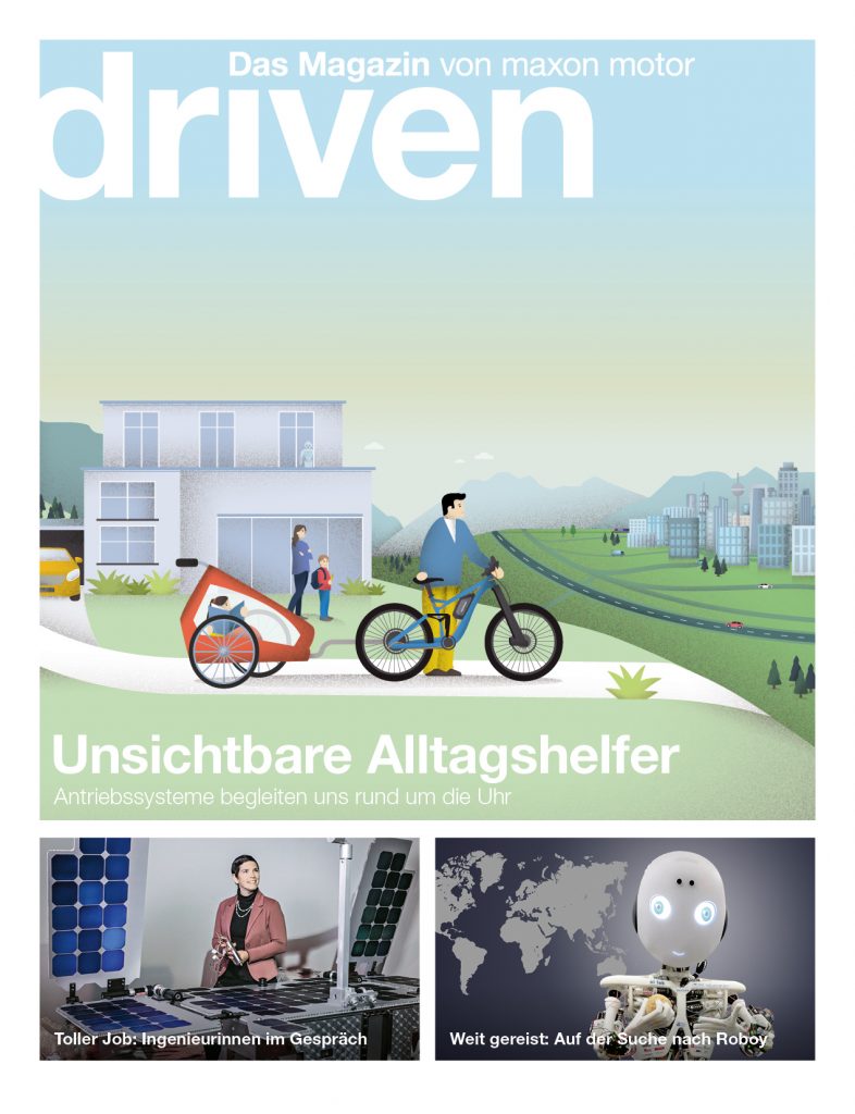Daheim, unterwegs oder bei der Arbeit: Überall gibts präzise Antriebssysteme, die unser Leben einfacher und sicherer machen. Das aktuelle Driven-Magazin vom Unternehmen Maxon Motor bietet einen Einblick in diese Welt. Und es macht sich auf die Suche nach einem alten Bekannten. Viele Personen haben beruflich nichts mit Antriebssystemen zu tun. Trotzdem begegnen Sie ihnen überall: In Fahrzeugen, Bussen, Aufzügen und sogar in den eigenen vier Wänden. Das Magazin begleitet eine Familie durch den Tag und stellt einige spannende Anwendungen vor. Darüber hinaus erfahren die Leser, wo sich der beliebte Roboy die letzten Jahre herumgetrieben hat und was die Zukunft bringt. Zudem wird das wichtige Thema ‚Frauen in technischen Berufen‘ aufgegriffen. Zwei Ingenieurinnen schildern ihre Erlebnisse in einem männlich dominierten Umfeld und geben Tipps für junge Frauen. Das Magazin erscheint zweimal jährlich und ist kostenlos auf der Unternehmenswebseite oder in der Driven-App erhältlich.