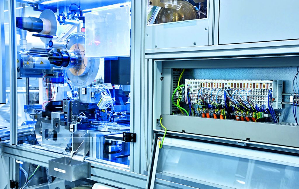 Die Vorteile von Präzision und Softwarefunktionalität sieht Lukas Nagel auch bei den mit Servomotorklemmen EL7211 und Antriebsverstärkern AX5000 realisierten Bewegungsachsen der Arbeitsstationen, wie z.B. Schneidwerke, Drehtische und Übergabearm. Ein gutes Beispiel sei die Messtasterfunktion des Servoverstärkers AX5000, mit der sich die Ist-Position des Reglers ohne Zeitversatz abhängig von einem Ereignis speichern lässt: „Diese Funktion kommt beim Einstanzen der Geometrie in das Trägertape zum Tragen und hat während des Entwicklungsprozesses einen großen Vorteil dargestellt“, fährt Nagel fort. „Denn anfangs standen weder die genaue Kartengröße noch die Anzahl der für das spätere Aufbringen des Plasmas notwendigen, einzustanzenden Auslassungen fest. All das konnte bei der Hubstanztechnik per Software einfach festgelegt und bei Bedarf angepasst werden. So ließ sich äußerst effizient z.B. die Kartengröße oder die Anzahl der Aufbringungsfelder definieren sowie die Abrundung der Kartenecken realisieren.“