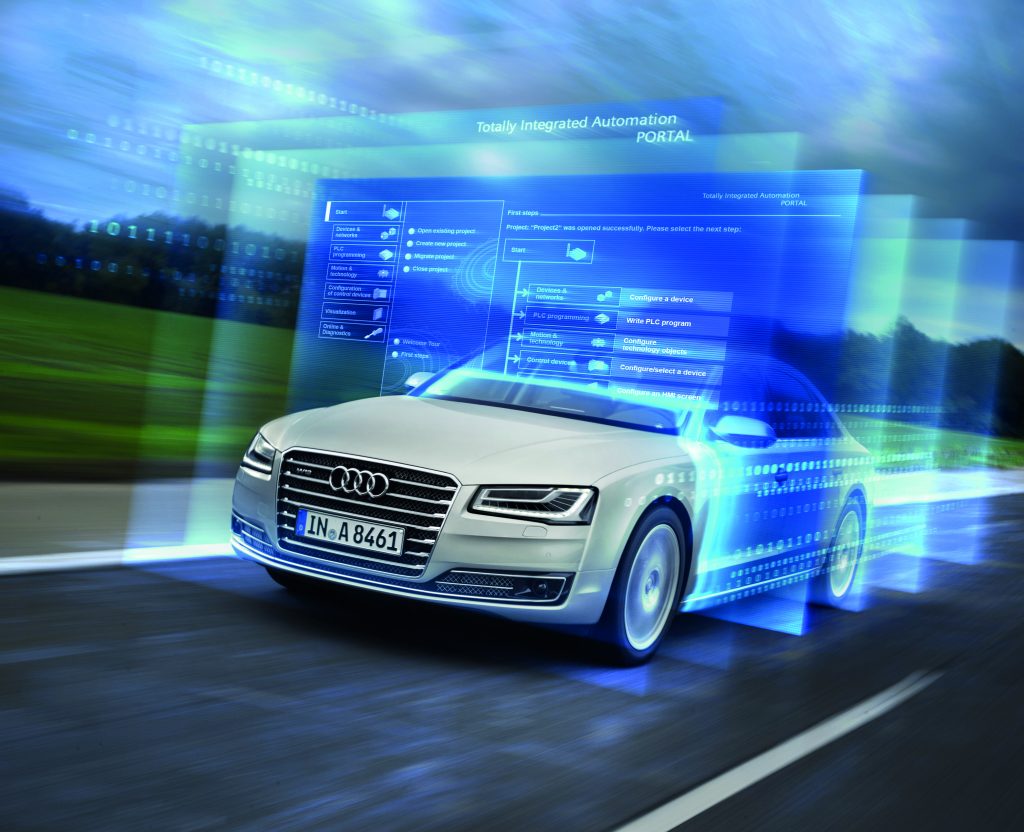 Die Automobilindustrie gilt als Premiumsegment technischer Entwicklungen, sowohl beim Endprodukt als auch bei der Produktionstechnik. Die Analogie zwischen der Konstruktion der Fahrzeuge und dem Aufbau der Fertigungsprozesse ist dabei unübersehbar: Standardisierung der Komponenten im Auto – Standardisierung in der Automatisierung, einheitliche Bordnetz-Kommunikation – industrielle Kommunikation via Profinet für alle Anwendungen – Start/Stopp-Automatik, ProfiEnergy in Pausenzeiten, Energierückgewinnung bei Bremsvorgängen – Energierückspeisung ins Netz durch Umrichter. An vielen weiteren Stellen zeigen sich ebenfalls Vorteile, die Systemdurchgängigkeit und moderne Techniken mit sich bringen: komfortable Fahrzeugdiagnose, integrierte Diagnosefunktionen bis in die Feldebene, adaptive Sicherheitssysteme und integrierte Safety-Funktionen. Das zeigt, dass Automobilindustrie und industrielle Systemlösungen viele Gemeinsamkeiten haben. Im Zuge der Errichtung neuer Produktionshallen für den Audi A8 waren folgende Eckpunkte relevant: geringerer Engineering-Aufwand, Energieeinsparung, weitere Erhöhung der Verfügbarkeit und Kosteneinsparungen. „Diese Ziele haben wir mit einer einheitlichen Automatisierungsplattform gemäß Totally Integrated Automation erreicht“, so Dr. Michael Niemeyer, Leiter Fertigungsplanung Automatisierung bei Audi. Die Standardisierung von Bauteilen und Montagestrategien führt im Automobilbau bereits seit vielen Jahren zu einem spürbaren Effizienzgewinn. Analog dazu durchzieht der TIA-Leitgedanke die Produktionslinie von der Steuerungstechnik bis zur Antriebstechnik. Im Zentrum der Automatisierungsstrategie steht das Engineering-Framework TIA-Portal von Siemens. Programmierung, Parametrierung, Visualisierung und Diagnose lassen sich mit dem Automatisierungsstandard auf einer einheitlichen Plattform umsetzen. Dieser lässt sich auf globaler Ebene auch von anderen Werken nutzen. Das gilt für die Steuerungstechnik sowie für die Schalt- und Antriebstechnik inklusive der integrierten Sicherheitstechnik.