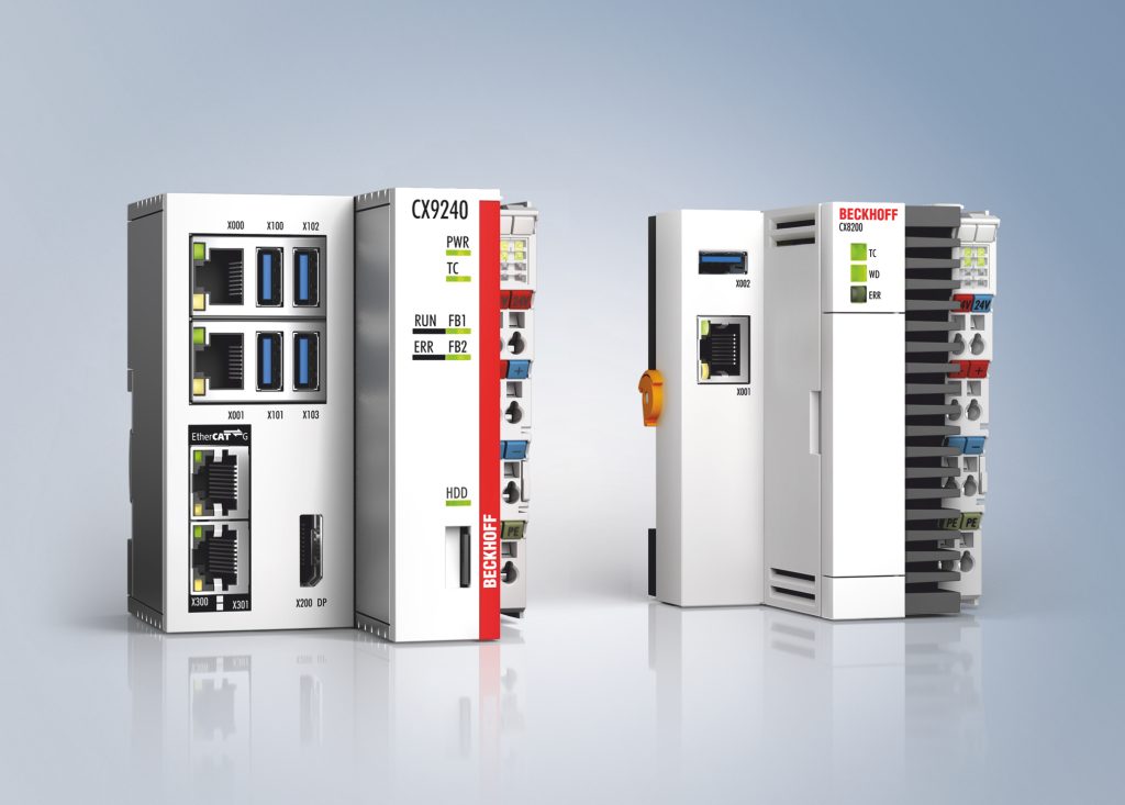 Die Embedded-PC-Serie CX82xx von Beckhoff ist eine Weiterentwicklung der CX81xx-Serie und vereint höhere Rechenleistung in einem kompakten Format für vielfältige Automatisierungsaufgaben. Ausgestattet mit einem schnellen ARM-Cortex-A53-Prozessor mit 64Bit-Architektur stehen eine für Kompaktsteuerungen erhöhte Taktfrequenz von 1,2GHz und zwei CPU-Kerne zur Verfügung. Die modernere CPU und die weiterhin geringe Leistungsaufnahme erweitern die Einsatzmöglichkeiten. Hinzu kommen die schnellere 1GBit-Ethernet-Schnittstelle und der mit 1GB-LPDDR4-RAM verdoppelte Arbeitsspeicher. Der neue Embedded-PC CX9240 ist eine kompakte, hutschienenmontierbare Ethernetsteuerung ebenfalls mit 1,2GHz-ARM-Cortex-A53-CPU und stellt eine Weiterentwicklung des CX9020 dar. Zum Einsatz kommt hier der noch leistungsfähigere Prozessor mit vier Kernen. Der CX9240 verfügt über zwei unabhängige 1GBit-Ethernet-Schnittstellen, die deutlich höhere Übertragungsraten ermöglichen. Mit 2GB-LPDDR4-RAM wurde der Arbeitsspeicher auch hier gegenüber dem Vorgängergerät verdoppelt.