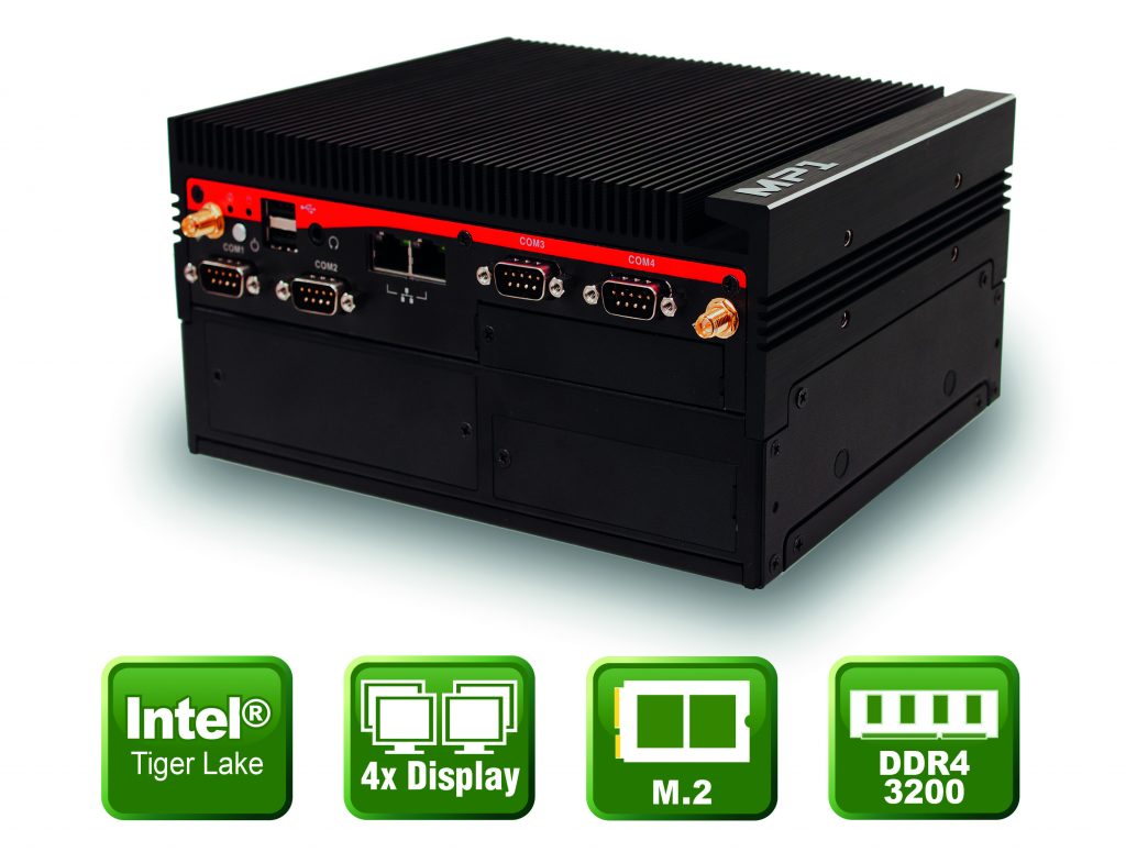 ICP stell die Embedded-PC-Serie MP1-11TGS-D vor. Zwei Einstiegsvarianten sind mit Zweikern-Prozessoren verfügbar. Für anspruchsvolle Rechenaufgaben steht eine Version mit Intel Core i5-1145G7E parat, ein Vierkern-Prozessor mit 8MB Cache und 1,5GHz Grundtakt sowie 4,1GHz Turbotakt. Highend-Rechenanwendungen laufen auf dem Intel Core i7-1185G7E mit vier Prozessorkernen, 12MB Cache und einem Grundtakt von 1,8GHz sowie einem Turbotakt von 4,4GHz. Alle Modelle können bis zu 32GB Arbeitsspeicher aufnehmen.