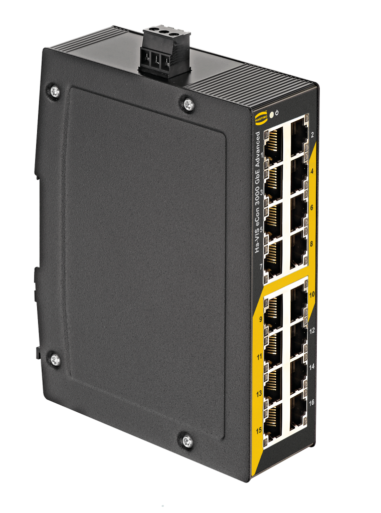 Harting hat einen neuen Ethernet Switch entwickelt, der individuelle Plug&Play-GBit-Netzwerklösungen für datenintensive Applikationen ermöglicht. Der Ha-VIS eCon bietet als unmanaged 16-Port-GBit-Switch laut Hersteller die nötige Leistung, um zeitgleich mehrere hochqualitative Bilder oder Streams zuverlässig über das Netzwerk zu transportieren. Durch ihre volatile Natur werden live Bilder oder Streams ohne Zuverlässigkeitsmechanismen im Netzwerk übertragen. Der Grund dafür ist, dass die Bilder oder Datenströme zu dem Empfänger in einer vorgegebenen Zeit übertragen werden müssen. Ist das nicht möglich, sind die Daten nicht mehr relevant. Um die korrekte Übertragung solcher Streams zu gewährleisten, unterstützt der neue Switch Jumbo Frames und ist mit einer Architektur ausgestattet, welche die Verfügbarkeit der Hardware-Ressourcen sicherstellen soll.