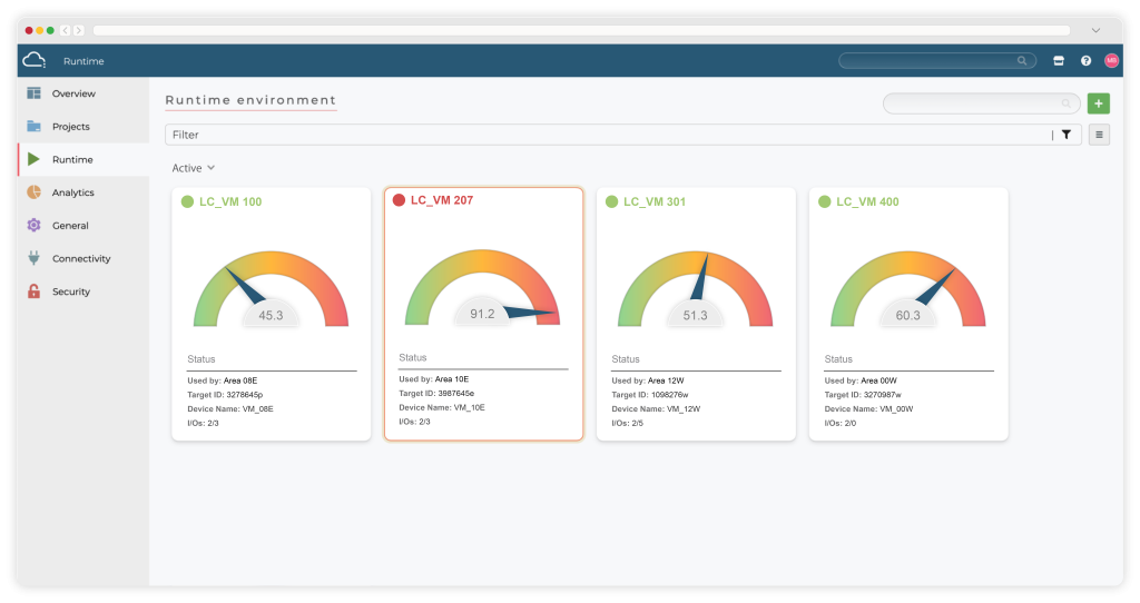 Im Dashboard kann die Auslastung der jeweiligen virtualiserten Cloud-SPSen überwacht werden. Auf diese Weise sind auch „per-use“-Abrechnungsmodelle denkbar. – Bild: Logiccloud AG