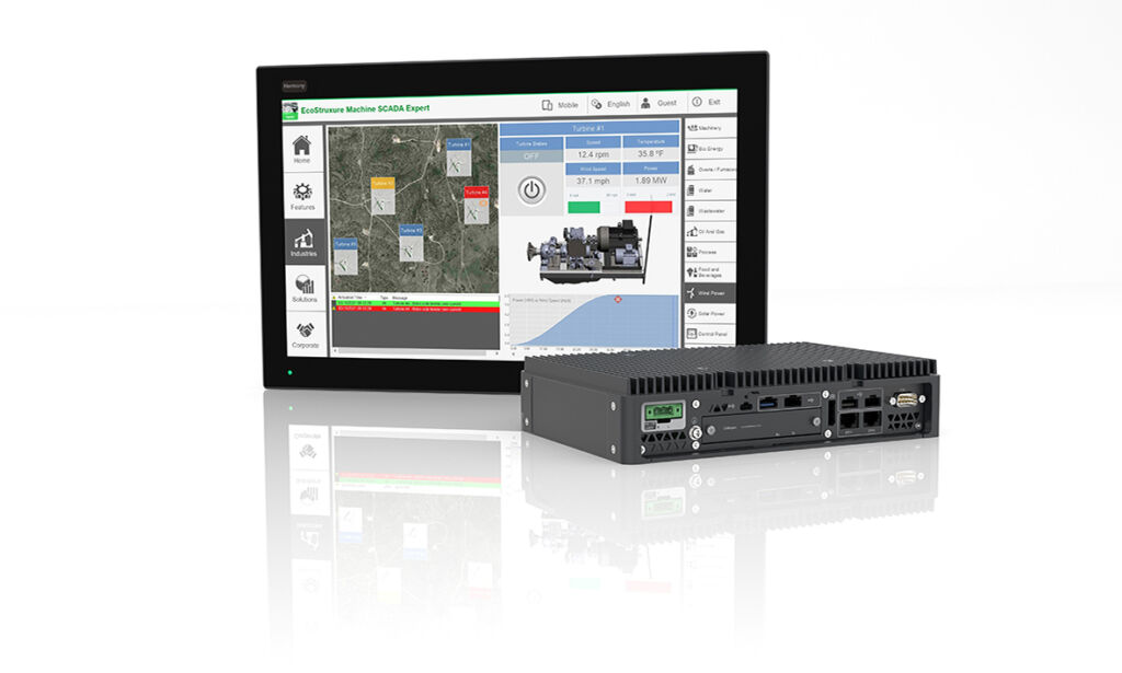 Innerhalb der IIoT-Architektur EcoStruxure von Schneider Electric sind sämtliche Feldgeräte, Steuerungen und Softwareapplikationen durchgängig miteinander vernetzt. Um auch herstellerheterogene Maschinenlandschaften nachträglich in das Vernetzungskonzept einzubeziehen, steht mit der GreenBox (iPC Harmony P6 mit Softwarebundle) ein besonders leistungsstarker Industrie-PC bereit. Dieser ist mit über 300 Kommunikationsprotokollen für alle gängigen Steuerungssysteme ausgestattet und damit insbesondere für die Datenzusammenführung in Brownfield-Anlagen geeignet. Zur Nutzung der Daten – z.B. für die Verbesserung von Wartungs- und Serviceeinsätzen – kann auf der GreenBox z.B. die Systemplattform von Aveva installiert werden. Die skalierbare Systemplattform führt Daten standortübergreifend zusammen und gewährt von einem zentralen Ort aus Echtzeiteinblicke in sämtliche Aspekte eines Unternehmens.