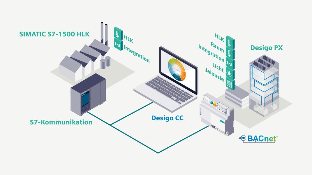 Simatic S7-1500 HLK (Heizung, Licht, Klima) verbindet die Prozessautomationskomponenten der Simatic-Familie mit der Gebäudemanagement-Plattform Desigo CC. Die Lösung soll die energieeffiziente HLK-Steuerung in industriellen Gebäuden und für anspruchsvolle Automationsaufgaben ermöglichen. Sie beinhaltet die freie Programmierung der HLK-Funktionen mit den funktionsgeprüften -Bausteinen nach ISO16484-2-2 und VDI3814. Das Engineering und die grafische Programmierung im TIA Portal sind durchgängig bis zum Managementsystem Desigo CC für eine benutzerfreundliche Grafikerstellung. Die HLK-Lösung unterstützt die Hardware-Variante für den fehlersicheren und den redundanten Betrieb. In der redundanten Variante synchronisiert die CPU über Profinet-IO-Ring oder LWL.