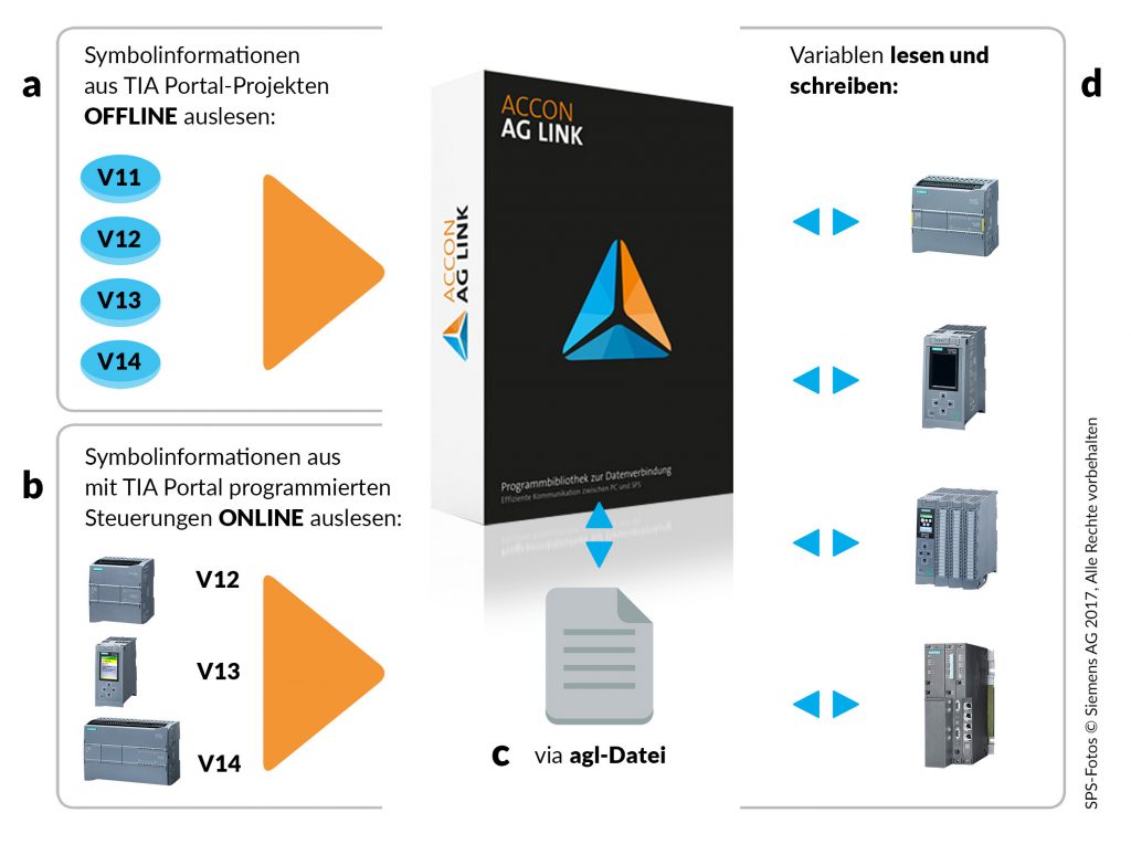 Mit der Version 5.3 der Kommunikationsbibliothek Accon-AGLink ermöglicht Delta Logic Anwendern, direkt Projektdaten aus dem TIA Portal V14 einzulesen. Somit erlaubt die Software den symbolischen und absoluten Datenzugriff auf die SPSen des Typs S7-1200 und S7-1500 sowie den absoluten Datenzugriff auf die älteren Varianten S7-300 und S7-400. Wie bereits in der Vorgängerversion unterstützt Accon-AGLink V5.3 auch das (offline) Auslesen von Daten aus vorherigen TIA-Portal-Projekten, aktuell aus den Versionen 11 bis 14. Die Software läuft auf den Betriebssystemen Windows und Linux (jeweils 32 und 64Bit), Windows CE, Embedded Linux, VxWorks sowie in der neuen Version zudem auf Raspberry PI 3 (Linux). Neben dem .NET Wrapper gibt es nun eine Java-Schnittstelle sowohl für Windows als auch für Linux (jeweils 32 und 64Bit).