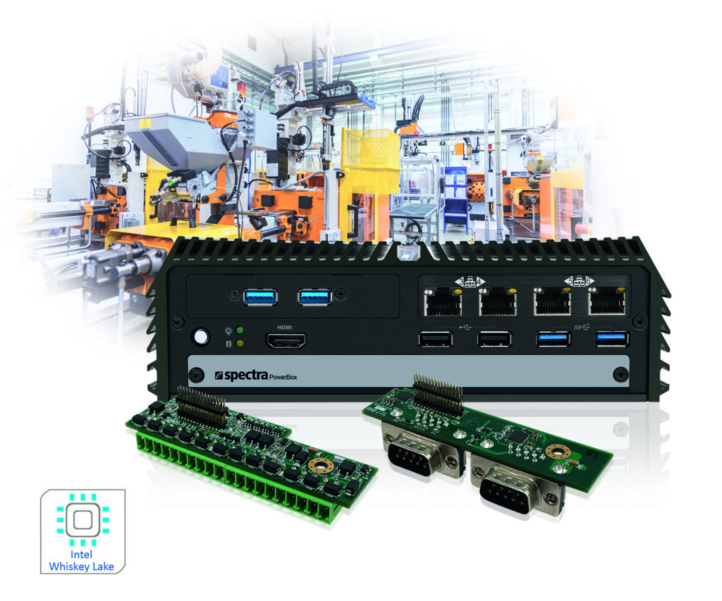 Das Baukasten-Prinzip der Spectra PowerBox 310-i7 bietet durch die Kombination der verfügbaren Funktionserweiterungen mehr als 100 Ausstattungsvarianten. Es können z.B. zwei zusätzliche 10GLAN-, vier LAN- oder PoE-Ports durch einfaches Einstecken kabelloser Multi-I/O-Module in den vorbereiten Sockel realisiert werden. Die mitgelieferten Brackets ermöglichen das saubere Herausführen der Anschlüsse auch mit M12- bzw. M12-X-Verschraubung. Für Erweiterungen wie WLAN, GSM, COM, USB, LAN und Firewire sowie unterschiedliche Feldbusse stehen zwei mPCIe-Sockel sowie ein Montage-Kit zur Verfügung.