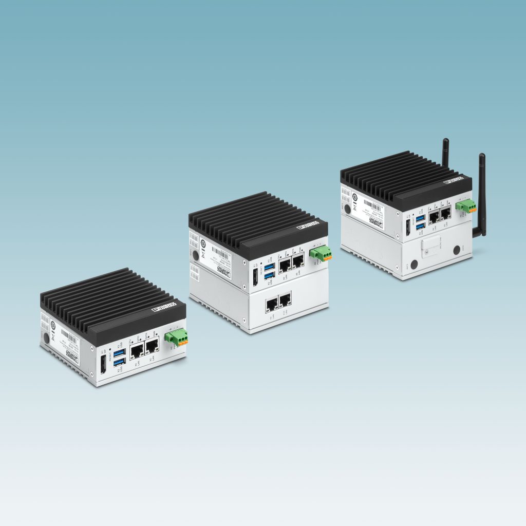 Der neue Ultra-Compact-Industriecomputer VL3 UPC von Phoenix Contact ist mit einem Intel-Atom-Prozessor der 6. Generation (ehemals Elkhart Lake) in Dual-Core- oder Quad-Core-Ausführung, dem neuesten DDR4-RAM und integrierten vorinstallierten NonVolatile Memory Express Solid-State-Speicherbausteinen ausgestattet. Die Systeme sind passiv gekühlt. In der Basisausstattung bieten sie eine DisplayPort-1.4-Schnittstelle für hochauflösende Bildschirme mit Multi-Stream-Transport, um mehrere Displays gleichzeitig mit Signalen zu versorgen. Ferner beinhalten alle Geräte zwei 2,5-Gb-Ethernet-Schnittstellen und Hochgeschwindigkeits-USB3.1-Anschlüsse. Der konfigurierbare Artikel kann um zwei serielle Schnittstellen erweitert werden, die als RS-32/422/485 einstellbar sind. Optional ist WLAN (a, b, g, n) in dem 100x100x50mm großen Basisgehäuse verfügbar. Zur Montage stehen Hutschiene oder Wandmontage per Montagewinkel zur Auswahl. Zudem werden zwei Erweiterungsmodule angeboten, die die Höhe des Industrie PCs um 30mm steigern. Diese umfassen u.a. zwei zusätzliche 2,5Gb-Ethernet-Ports und eine M.2-Buchse, wobei die M.2-Schnittstelle für Speichererweiterungsgeräte verwendet werden kann.