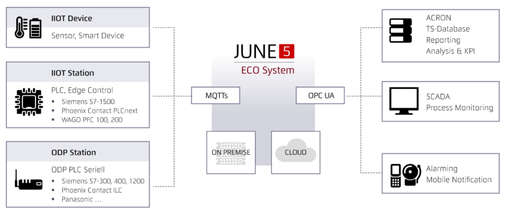 Die Herausforderung bestand darin, ein weltweit betriebenes System sowohl in den verschiedensten Zielmärkten einsetzbar zu machen als auch die Anforderungen hinsichtlich der IT-Sicherheit nicht aus den Augen zu verlieren. Ebenso war eine weltweite Verfügbarkeit des Fernwartungszugriffs verpflichtend. Die Kombination aus der Messwerterfassung (June5 Gate) und der Fernwartungslösung CMA-Cloud gewährleistet ein fernadministrierbares System, was durchgängig (fern)parametrierbar ist und so die Konfigurationen vor Ort an den Edge Devices vermeidet. Eine Herausforderung bestand auch darin, die große Anzahl an Datenquellen homogen zu erfassen. Da z.B. Messwertimpulse sich wegen der Netzwerk-Latenzen nicht zuverlässig übertragen lassen, müssen lokale addierende Zähler implementiert werden. Die Zählerwerte werden über feste Zeitintervalle gebildet und übertragen. Hierbei sind die Interrupt OBs der Insevis CPU hilfreich und grenzen das System von gängigen Einplatinenrechnern ab, welche ein derartiges Verhalten nicht zuverlässig in industriellen Umgebungen nachbilden können. Die Systemdiagnose der SPS stellt jederzeit die Systemintegrität und Gültigkeit der erfassten Messwerte sicher.