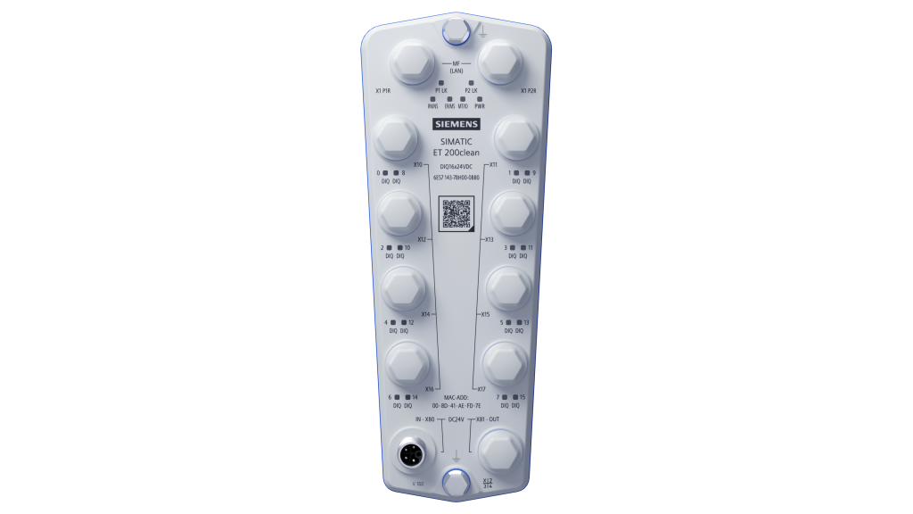 Simatic ET 200clean von Siemens wurde entwickelt, um Hygiene-Herausforderungen entgegenzuwirken und Produktionsprozesse zu verbessern. Durch das EHEDG-zertifizierte Design, ist eine gründliche 360°-Reinigung möglich. Das chemisch resistente Gehäusematerial ist robust und hält selbst dem Einsatz von Hochdruckreinigern stand. So verfügt das Gerät über die Schutzart IP69K, was den Betrieb in sehr anspruchsvollen Umgebungen ermöglicht.