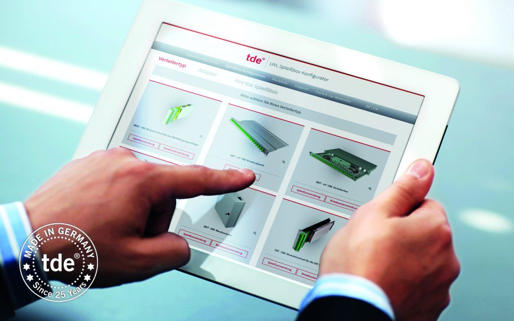 Trans Data Elektronik hat seinen LWL-Spleißboxen-Konfigurator visualisiert. Dafür hat das Unternehmen hochauflösende Fotos aller Verteilertypen und Adapter integriert. Dank intuitiver und vereinfachter Benutzerführung erhalten Kunden somit schnelle und individuelle Konfigurationen. Eine Auswahlleiste bildet den Fortschritt des Konfigurationsvorgangs ab und erlaubt Kunden, jederzeit Änderungen und Anpassungen vorzunehmen. Durch die visuelle Unterstützung lassen sich die Spleißboxen gezielt und fehlerfrei konfigurieren. Der um die Produktvisualisierung erweiterte Konfigurator basiert auf der Produktdatenbank des TDE-eigenen CrossMediaPublishing-Systems. In drei Schritten können Kunden passgenaue und plausible Spleiß- und Breakoutboxen mit unterschiedlichster Bestückung konfigurieren. Als erstes wählen Kunden den Verteilertyp. Im zweiten Schritt folgt die Bestückung. Danach lässt sich je nach Produkt die Konfiguration mit Sonderausstattungen versehen.