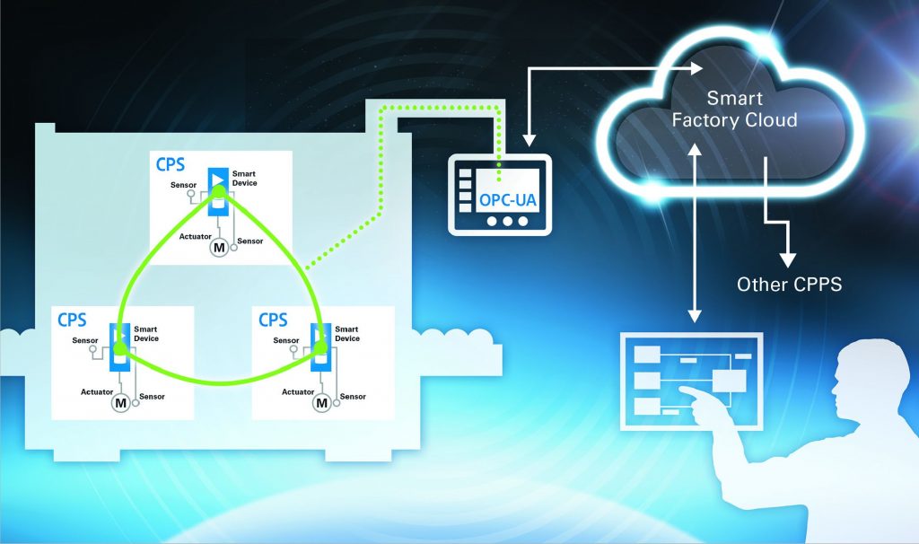 Eines der Grundprinzipien ist die einheitliche Befolgung des ‚distributed models‘, dem verteilten Ansatz. Unternehmen zahlreicher Branchen, insbesondere im Maschinenbau, befinden sich noch in einer Frühphase bei der Nutzung dieses Ansatzes, weil die geeigneten Technologien bisher nicht verfügbar waren. Für konventionelle, zentral gesteuerte Maschinen lassen sich viele Anschlussmöglichkeiten für die Welt der Industrie 4.0 finden. Weil sie aber nicht nahtlos eingebunden sind, bleiben diese Lösungen jedoch Provisorien und zahlreiche Vorteile des Internet of Things für den Maschinenbau können nicht genutzt werden. Unternehmen, die jetzt damit beginnen, CPS-Einheiten entsprechend dem verteilten Ansatz einzusetzen, werden bereits kurzfristig von den Möglichkeiten profitieren können.