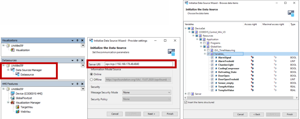 In Codesys sind zahlreiche Kommunikationsprotokolle implementiert: Zum Beispiel für Download und Debugging der Applikation, zur Nutzung von E/A-Modulen per Feldbus, zum Auslesen von peripheren Modulen über proprietäre Schnittstellen oder zur Kommunikation zwischen anderen Steuerungen. Mit einem integrierten OPC-UA-Server unterstützt das Tool bereits seit einigen Jahren das wichtigste Protokoll für Industrie-4.0-Anwendungen. Mit dem neuen Service Pack wurde das OPC-UA-Angebot nun in mehrere Richtungen erweitert: Im Development-System können Anwender XML-basierte Informationsmodelle in ein entsprechendes Repository importieren. Über das Objekt „Kommunikationsverwalter“ lassen sich OPC-UA-Informationsmodelle ins Projekt einfügen. Die für zahlreiche Branchen getroffenen Vereinbarungen von Datenmodellen, insbesondere die OPC-UA-Companion-Specifications, lassen sich somit flexibel einbinden. Welche der verfügbaren Datenstrukturen oder -typen dabei verwendet werden sollen, kann der Anwender selbst auswählen. Per Knopfdruck erzeugt er IEC-61131-3-Deklarationen bzw. -Programmbausteine und instanziiert diese entweder manuell oder automatisch per Befehl. Diese Variablen kann er im SPS-Code sofort nutzen und über den OPC-UA-Server veröffentlichen. Enthält ein Informationsmodell OPC-UA-Methoden, so kann der Anwender deren Funktion im generierten Baustein selbst auskodieren. Davon profitieren verbundene OPC-UA-Clients: Sie können diese Methoden und damit Funktionen des Servers aufrufen. So führt der Server speziellen Applikationscode aus, auf Zuruf vom Client.