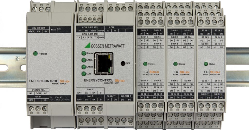 Die Summenstation SU1604 von Gossen Metrawatt lässt sich aufgrund des modularen Aufbaus auf bis zu 64 Rechenkanäle erweitern. Den einzelnen Kanälen lassen sich sowohl galvanisch getrennte S0-Zählereingänge zur Verarbeitung von impulsförmigen S0-Eingangssignalen als auch LON-Geräte über die einfach zu verdrahtende, verpolungssichere und galvanisch getrennte LON-Schnittstelle zuordnen. Ermittelte Arbeits- oder Verbrauchswerte werden synchron zum Messintervall des Energieversorgers über definierte Zeiträume und ein programmierbares Intervall summiert und mit den Maxima gespeichert. Zusätzlich zur Intervall-Messdatenliste sind bis zu vier Recorder mit maximal 64 Kanälen und unterschiedlichen Zeitbasen ab einer Sekunde definierbar. Jeder Kanal lässt sich für Analog-, Leistungs- und Verbrauchswerte im Intervall oder für Gesamtzählerstände parametrieren.