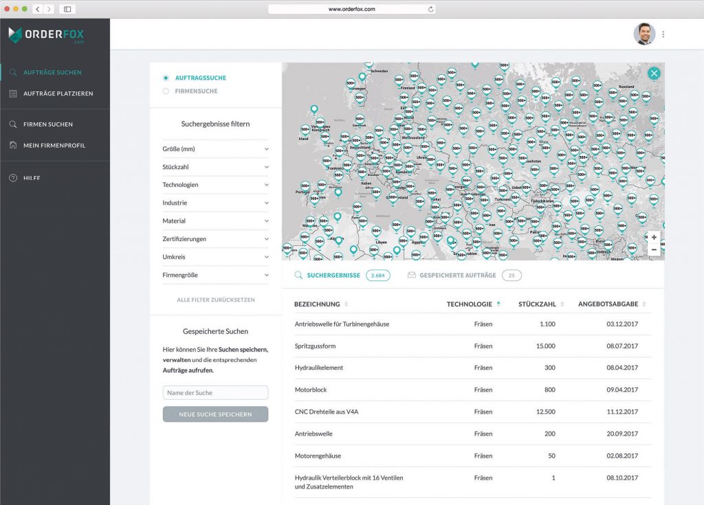 Die neue Online-Plattform Orderfox will für den globalen CNC-Markt Fertigungsunternehmen und Einkäufer sowie die Zulieferindustrie der Branche verbinden. Über smarte Filterfunktionen kann der Nutzer nach CNC-Aufträgen, Lieferanten oder Geschäftspartnern suchen. Nur wenige Wochen nach dem Start im Juni gab es auf der Plattform bereits über 45.000 Suchaktionen (Firmen und CNC-Aufträge) sowie täglich rund 400 User. Seit August verfügt Orderfox weltweit über mehr als 160.000 Community-Teilnehmer. Sie kommen aus dem gesamten EU-Raum sowie aus Amerika und Asien. Um die Plattform zur weltgrößten CNC-Datenbank und Branchenplattform zu machen, soll es bis Ende September mehr als 260.000 Community-Teilnehmer geben. CNC-Fertiger und -Einkäufer, die sich auf orderfox.com registrieren, können die Plattform bis auf weiteres kostenlos nutzen – mit sämtlichen Features und Funktionen und Vorteilen des digitalen und globalen CNC-Marketplace.