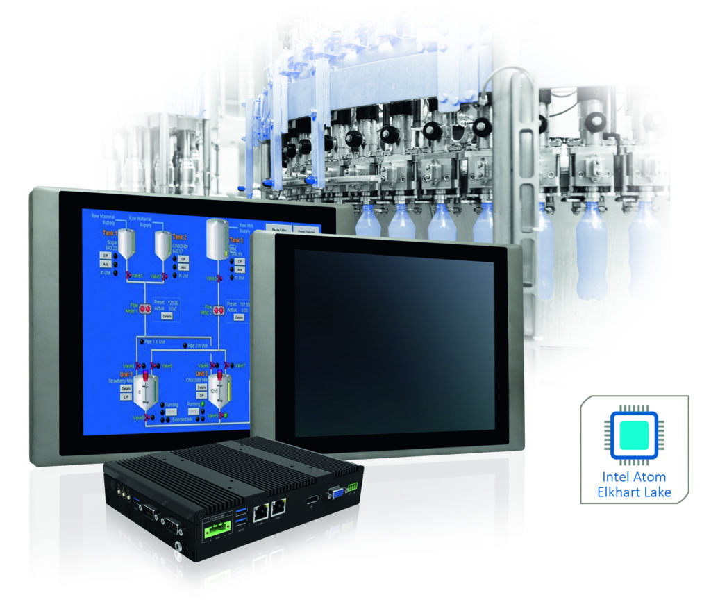 Mit der PowerTwin-120-Serie bringt Spectra eine neue Generation der Panel- und Box-PCs im Baukastensystem auf den Markt. Diese bauen auf einem modularen Konzept auf, bei dem das Display durch eine rückseitig aufgesteckte PC-Einheit zum Panel-PC wird. Die aufgesteckte Einheit kann aber auch ohne Display als klassischer Box-PC eingesetzt werden. Es stehen Multitouch- und Singletouch-Displays mit Diagonalen von 8,4 bis 24″ zur Wahl, je nach Modell im 4:3- oder 16:9-Format. Die plane Displayfront erfüllt die Anforderungen der Schutzklasse IP65. Der Box-PC der Serie basiert auf einem Intel-Atom-x6425E-Prozessor der Elkhart-Lake-Familie. Dieser Prozessor verfügt über vier physische Kerne und unterstützt aufgrund von Hyper-Threading das Ausführen von bis zu acht Threads gleichzeitig. Ein 8GB-Arbeits- und ein 128GB-Massenspeicher unterstützen die Leistungsfähigkeit des Systems. Es stehen zwei Gigabit-LAN-, vier USB-, zwei RS-232/422/485-, eine VGA-Schnittstelle und ein DisplayPort sowie jeweils vier digitale Ein- und Ausgänge zur Verfügung. Die PC-Einheit unterstützt die Aufnahme einer SIM-Karte zur mobilen Kommunikation. Je ein Mini-PCIe- und M.2-2230-Slot kann für zusätzliche Erweiterungen genutzt werden. Durch das bedienerfreundliche Steckprinzip kann der Box-PC zum Panel-PC umgerüstet werden oder nur ein Element ressourcenschonend ausgetauscht werden.